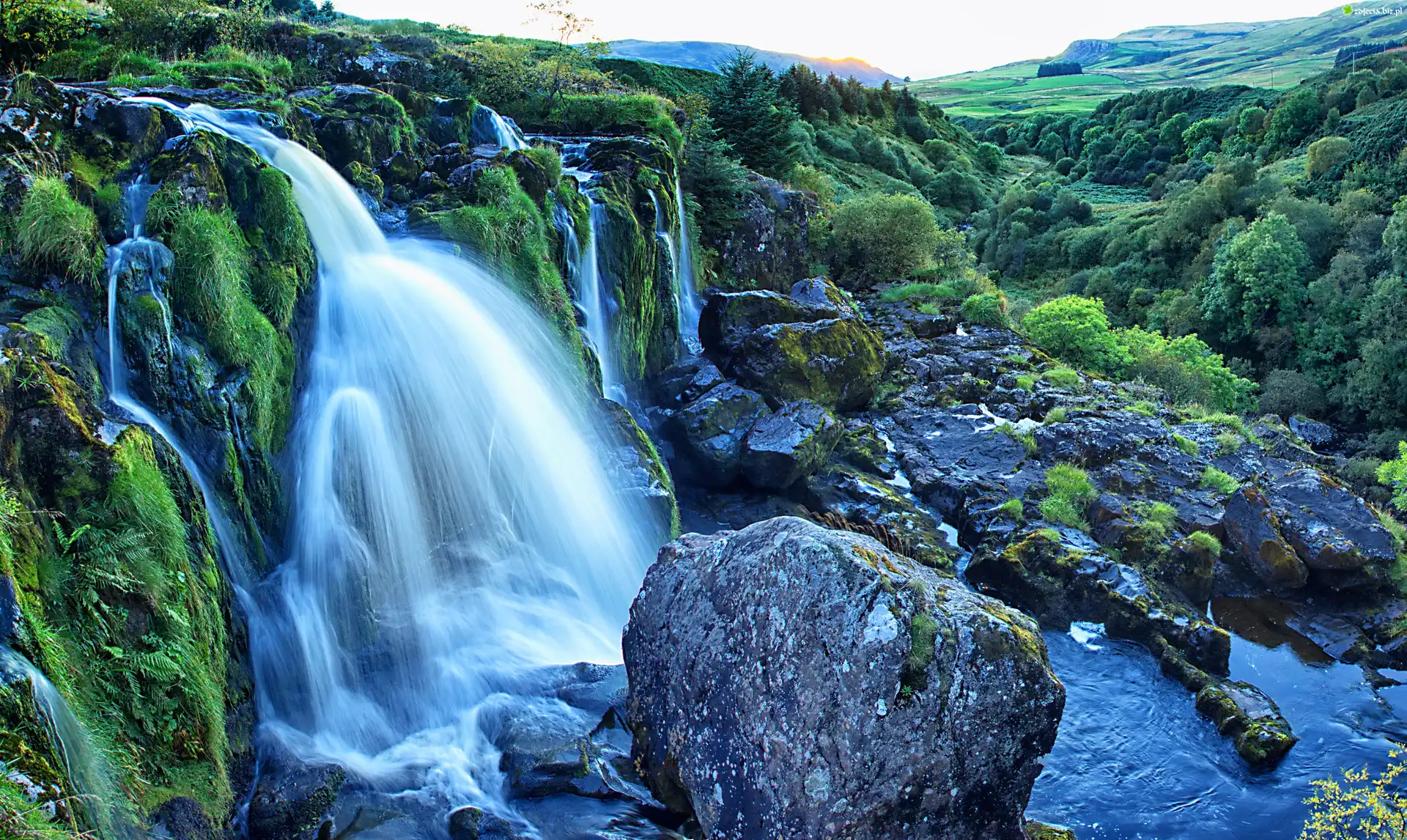 Zdjęcie, Wodospad, Kamienie, Szkocja