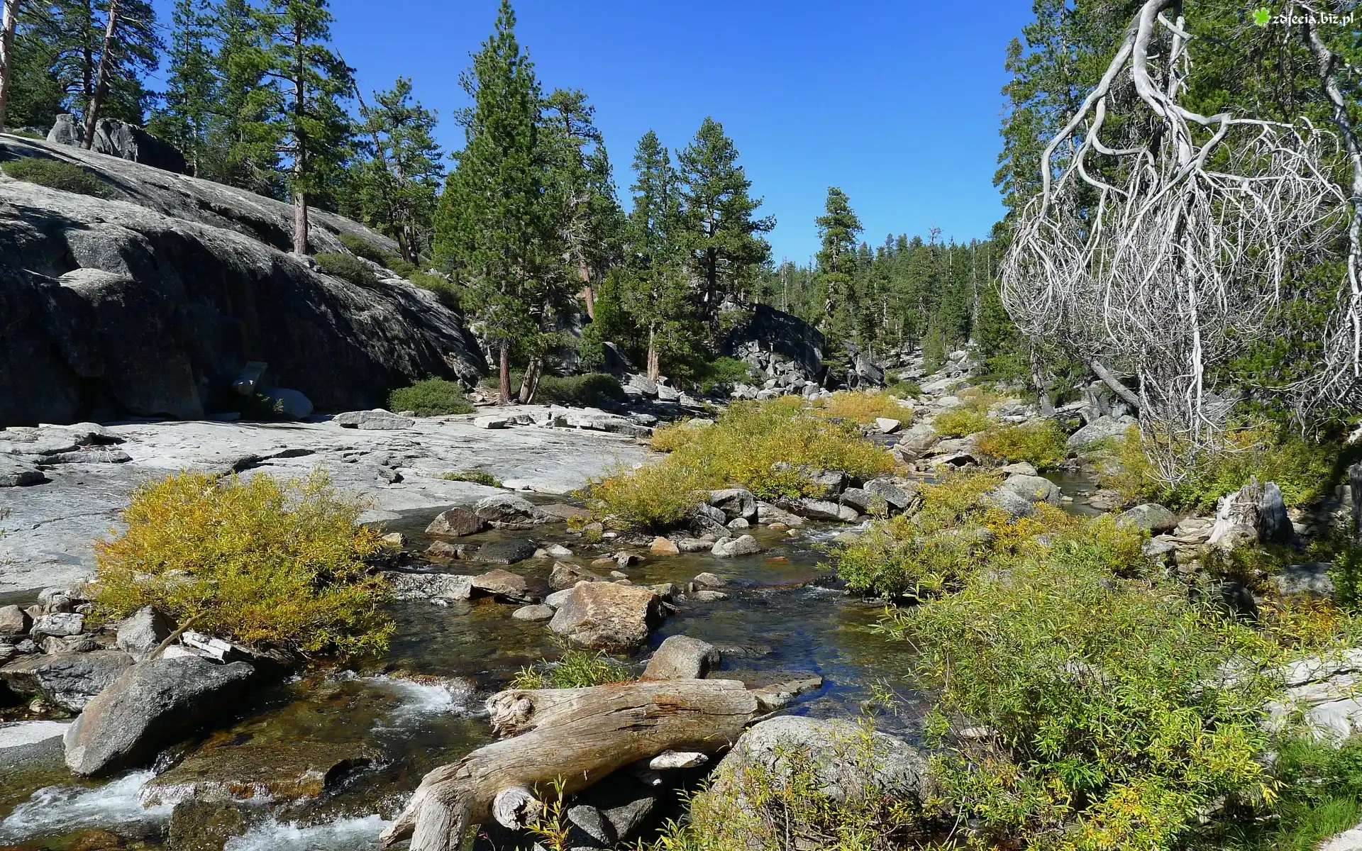 Zdjęcie Stany Zjednoczone, Stan Kalifornia, Park Narodowy Yosemite, Kamienie, Rzeka, Las