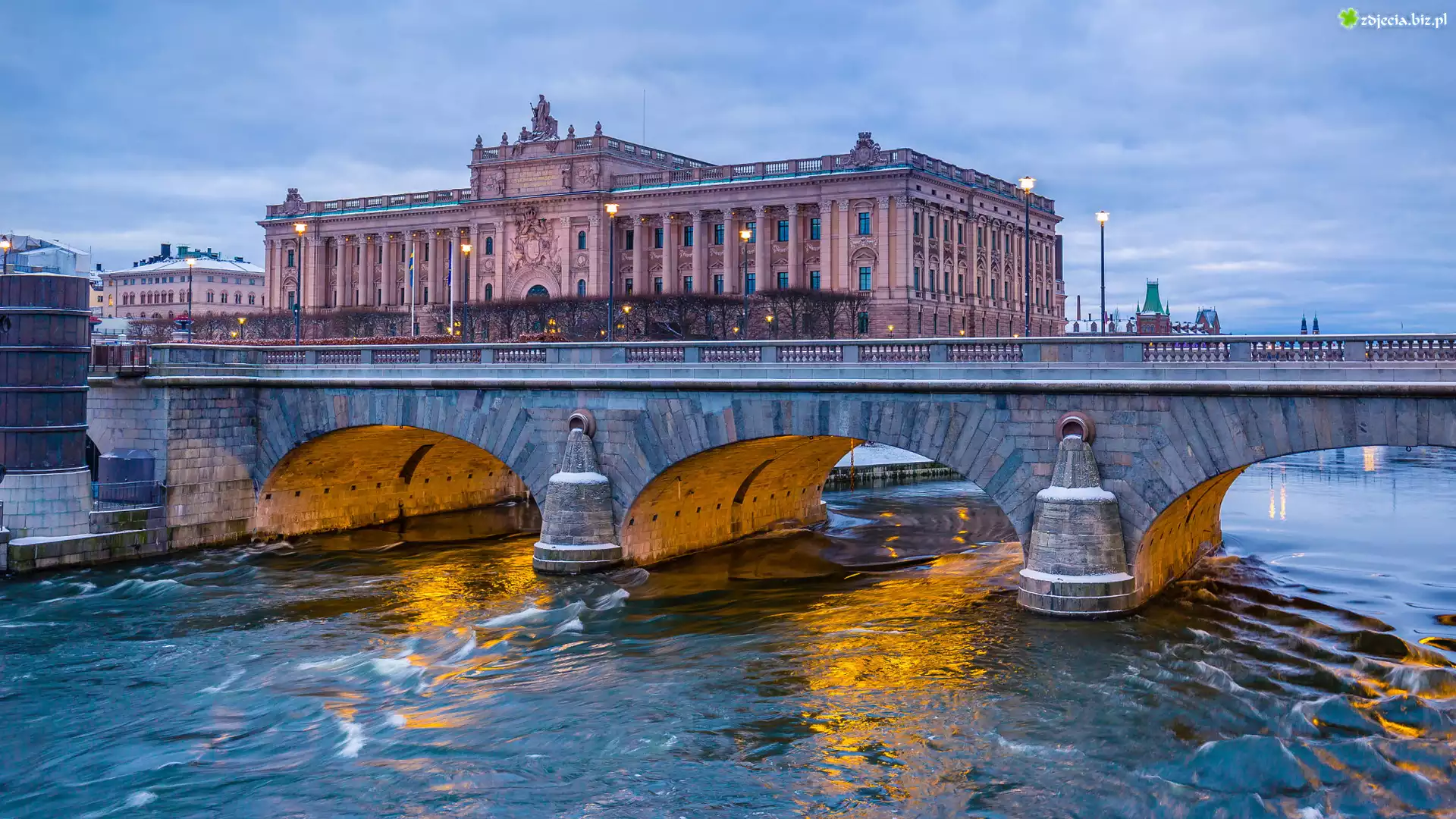 Zdjęcie Szwecja, Sztokholm, Stare Miasto, Budynki, Riksdag, Parlament, Rzeka, Most, Kamienny