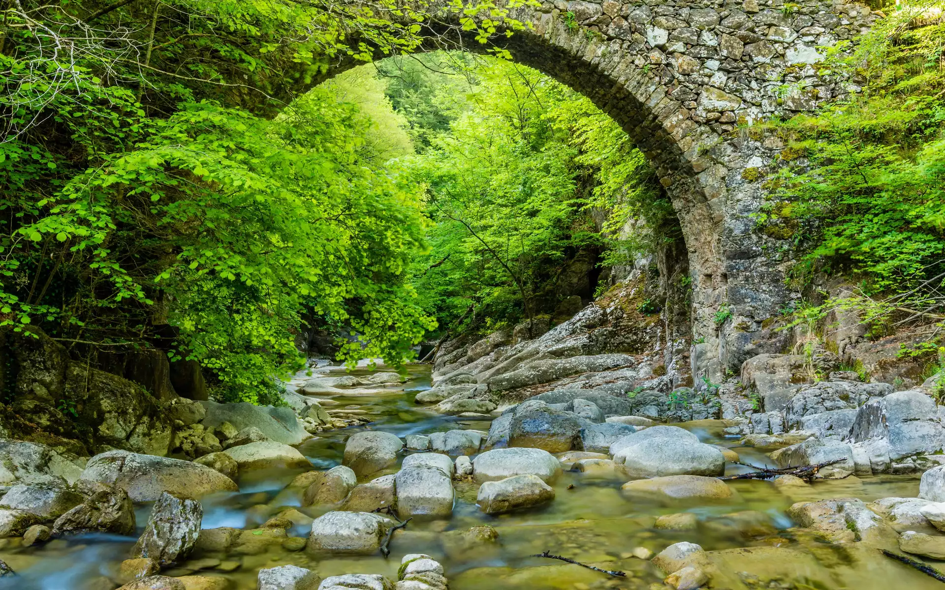 Zdjęcie Kamienny, Most, Rzeka, Drzewa, Kamienie, Las