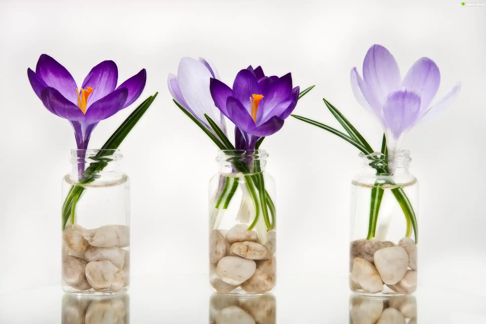 Zdjęcie, Butelki, Kamyczki, Krokusy