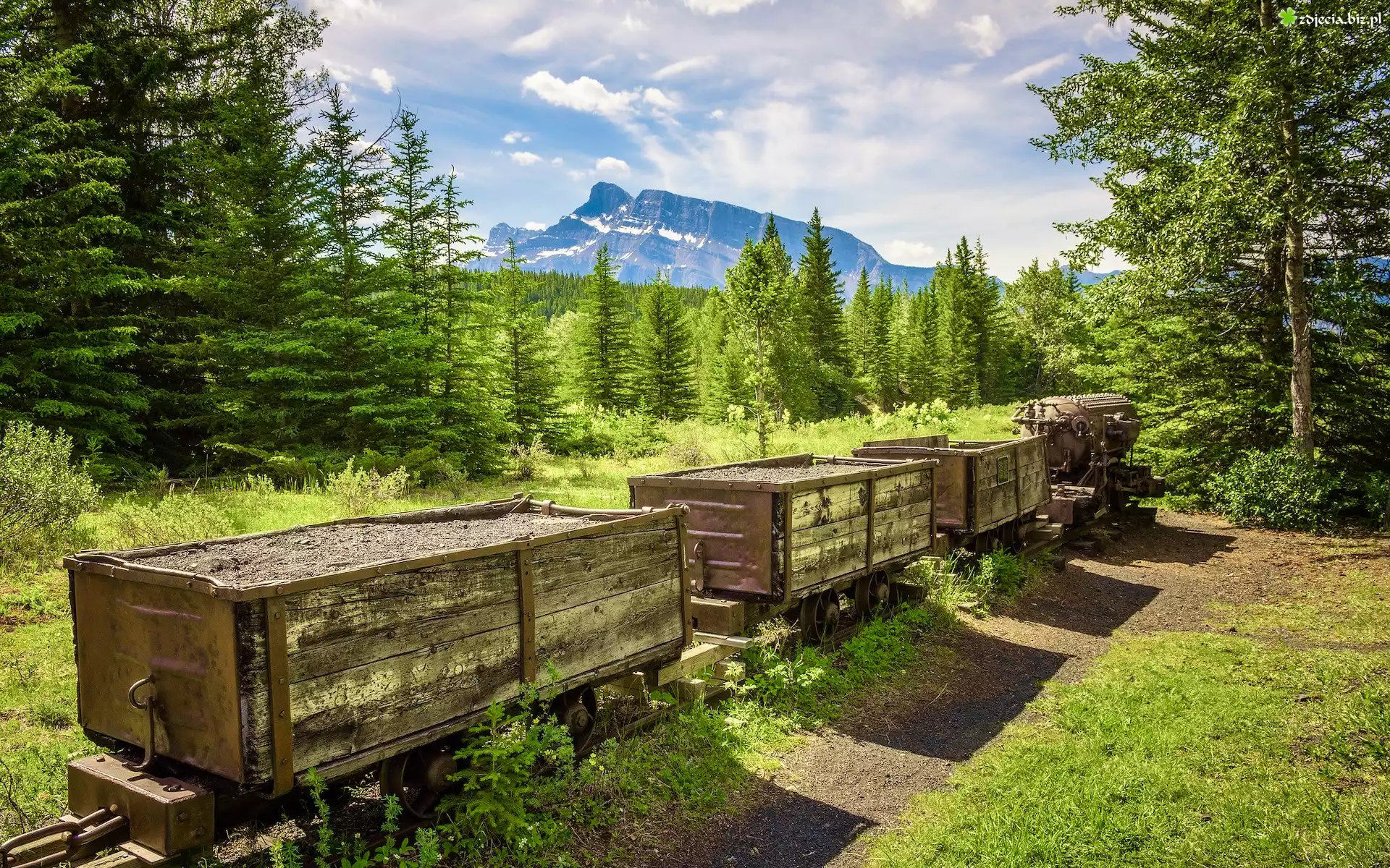 Zdjęcie Kanada, Alberta, Lasy, Drzewa, Góra, Mount Rundle, Park Narodowy Banff