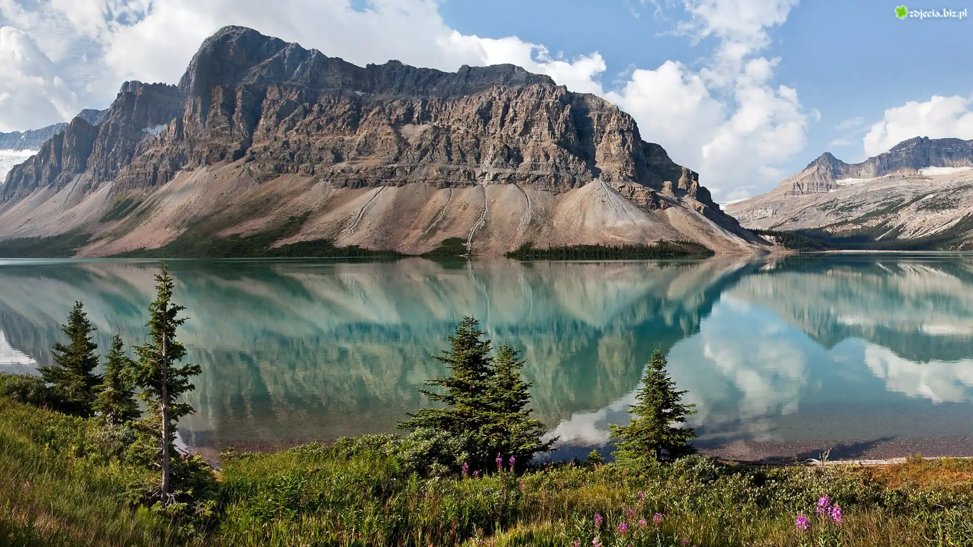 Zdjęcie Kanada, Prowincja Alberta, Park Narodowy Banff, Jezioro Bow Lake, Góra Crowfoot Mountain, Roślinność |