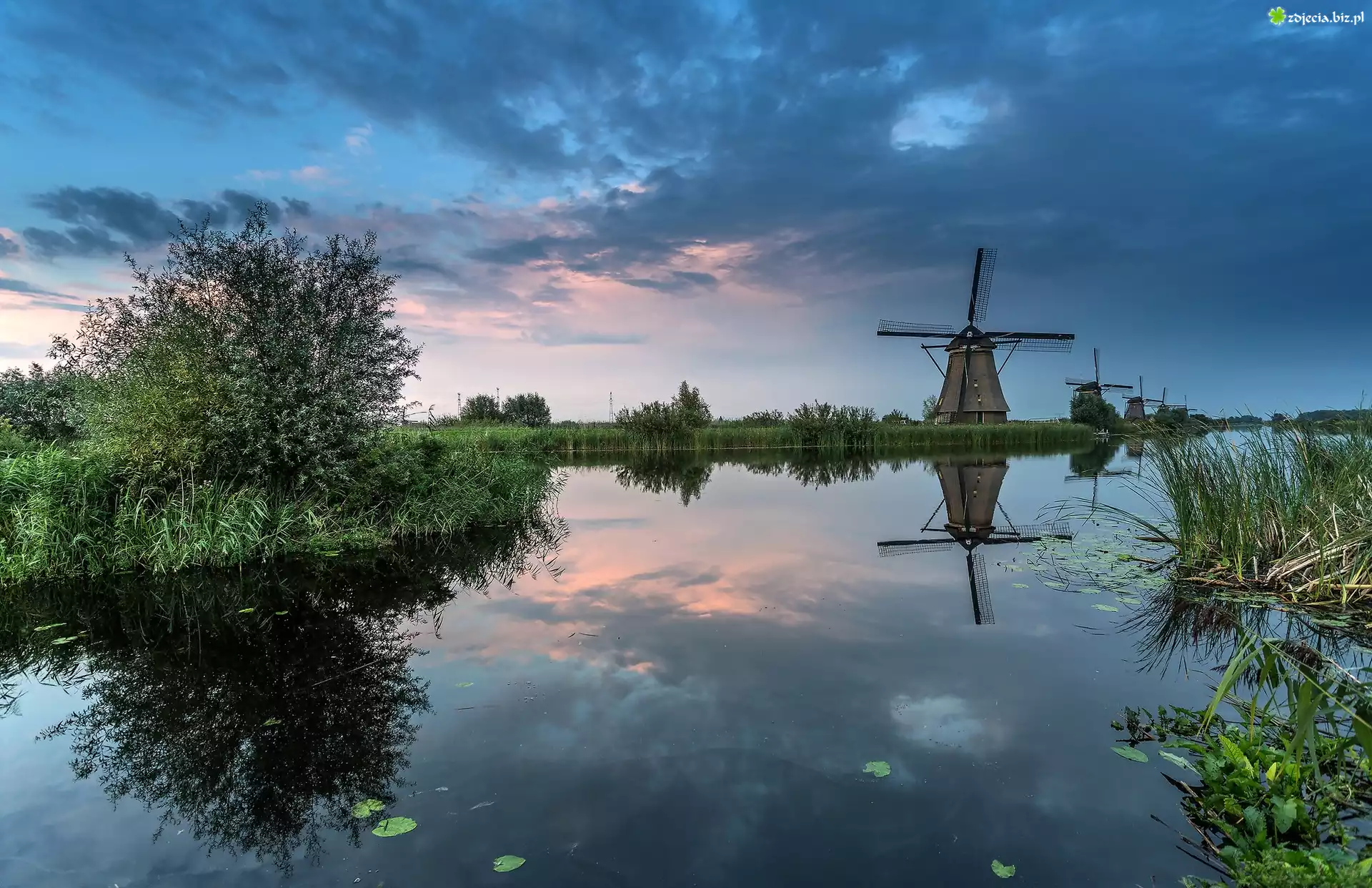 Zdjęcie, Wiatrak, Kanał, Chmury