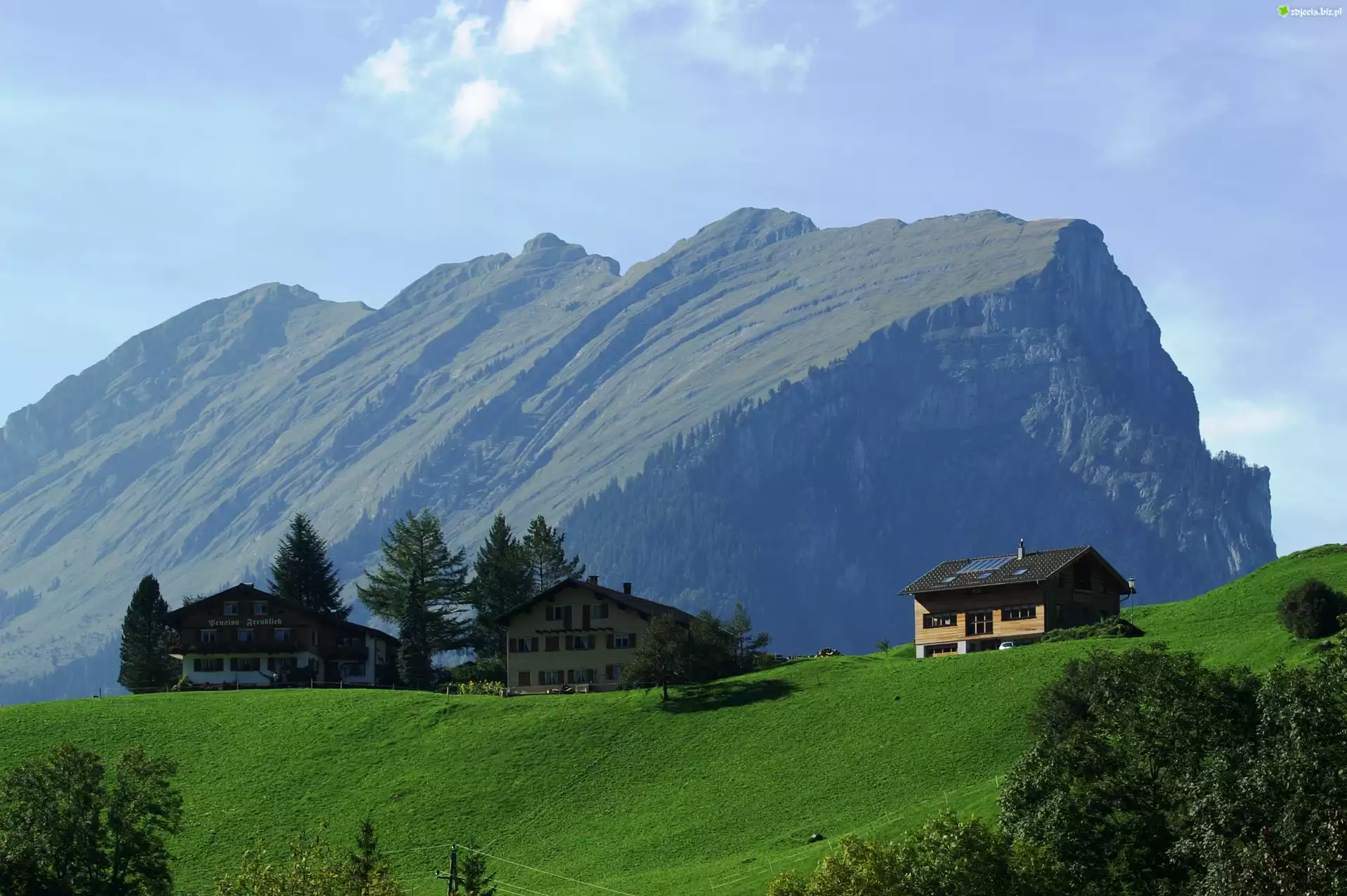 Zdjęcie, Kanisfluh, Austria, Łąka, Domy