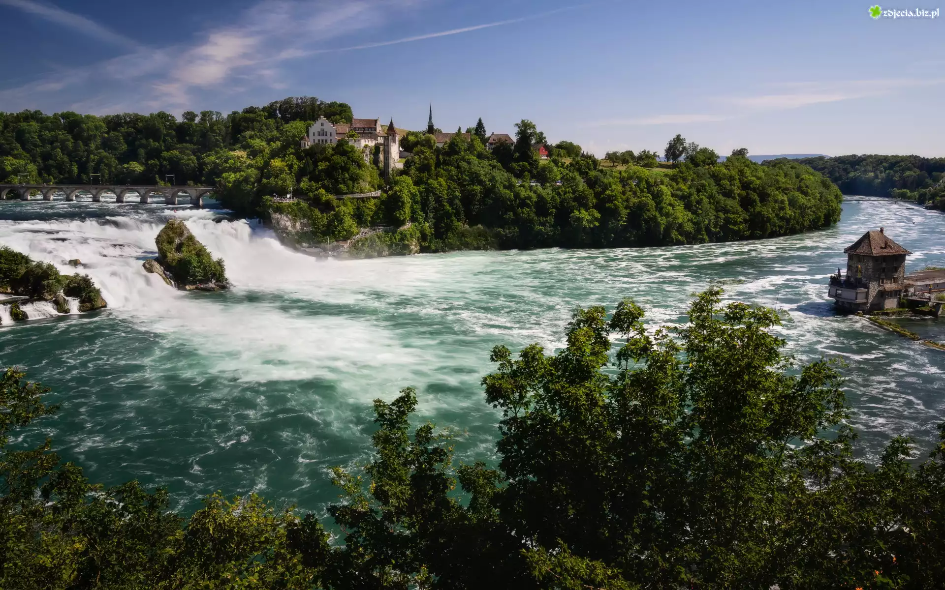 Zdjęcie Wodospad Rheinfall, Rzeka Ren, Zamek Laufen, Neuhausen am Rheinfall, Kanton Szafuza, Szwajcaria |