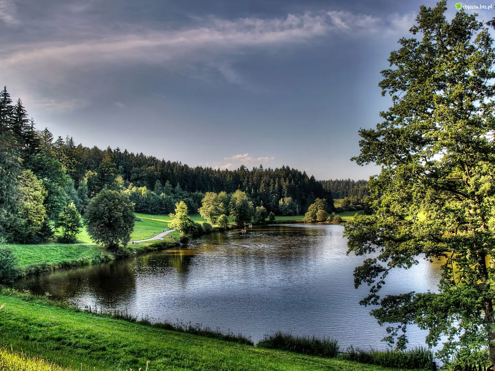 Zdjęcie, Jezioro, Kąpielisko, Las