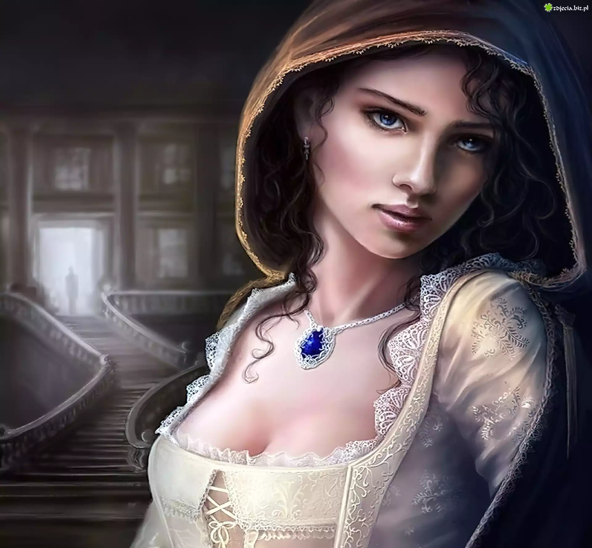 Zdjęcie Kobieta, Kaptur, Naszyjnik