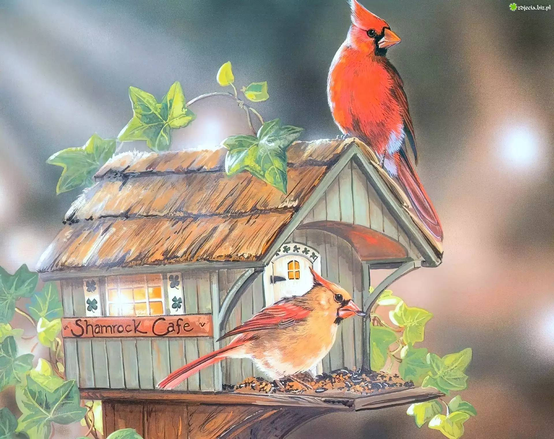 Zdjęcie Ptaki, Kardynały, Karmnik