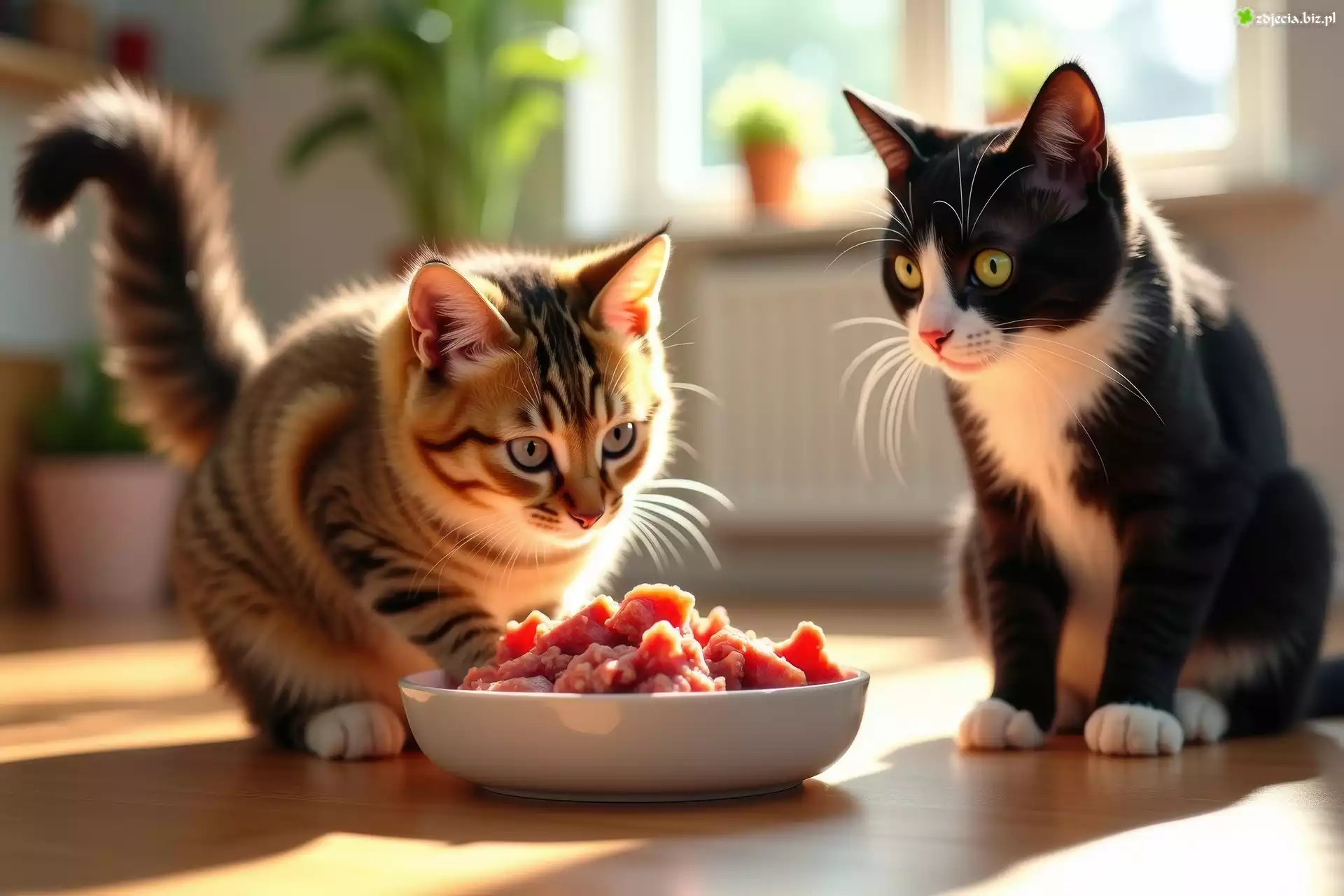 Zdjęcie, Dwa, Koty, Miska, Karma