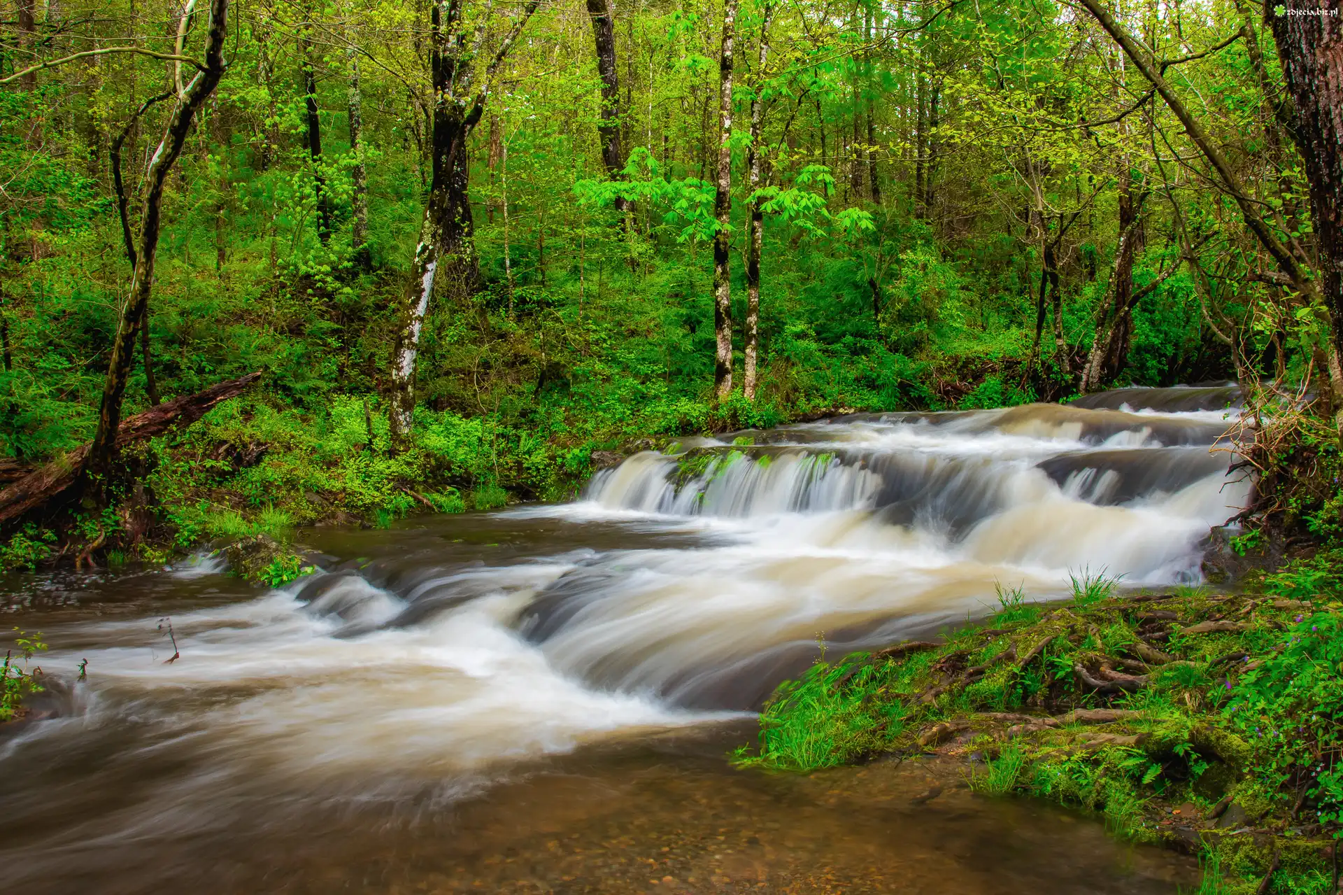 Zdjęcie Kaskada, Rzeka, Las, Drzewa