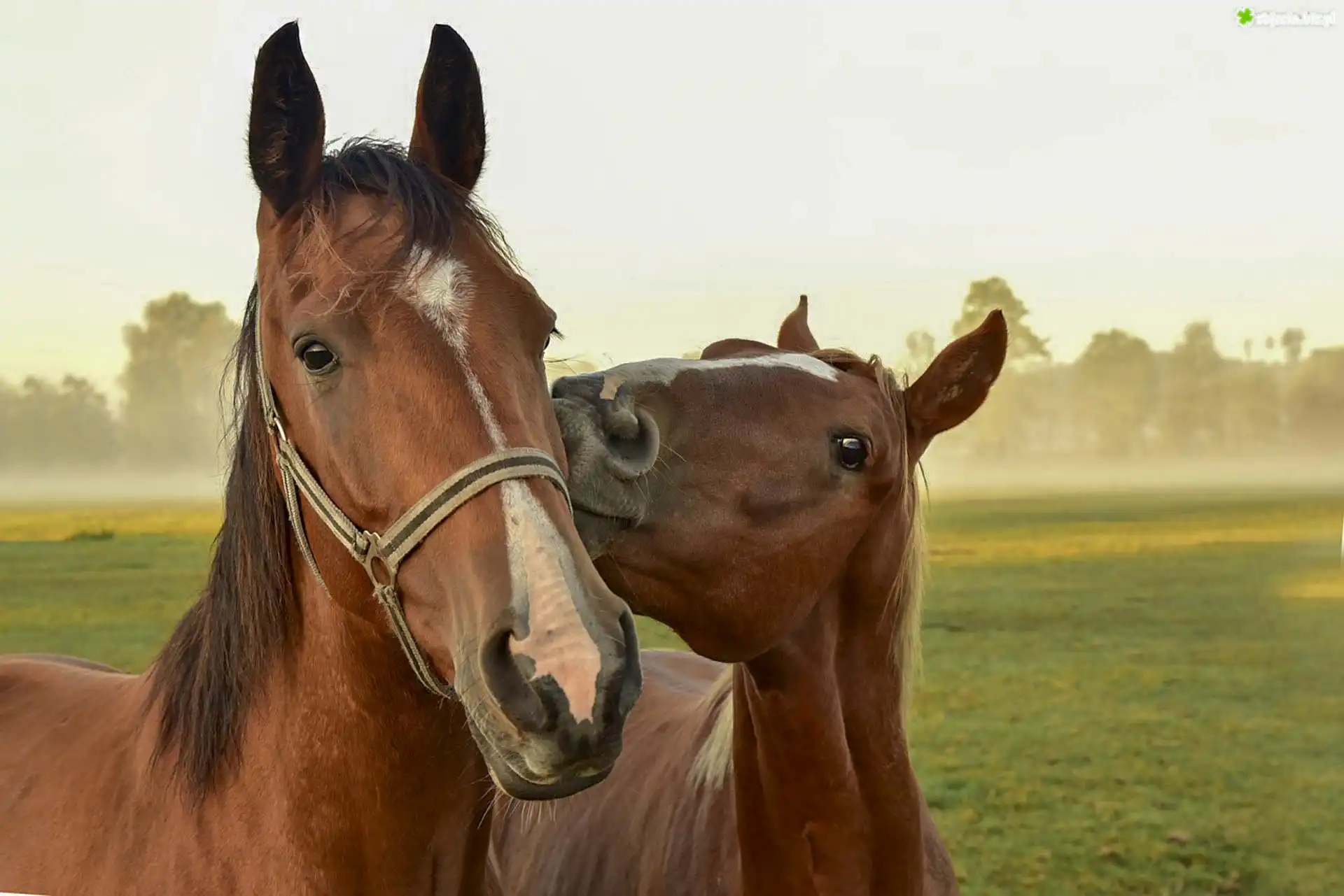 Zdjęcie, Dwa, Kasztanowe, Konie