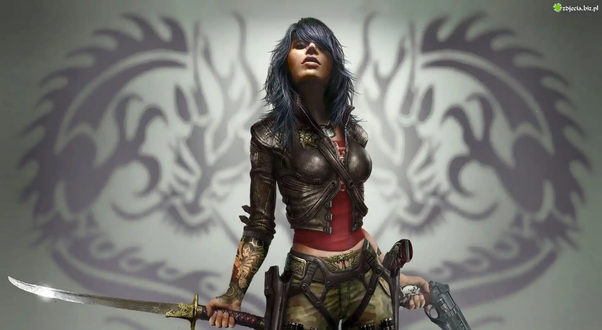 Zdjęcie Dziewczyna, Katana, Pistolet