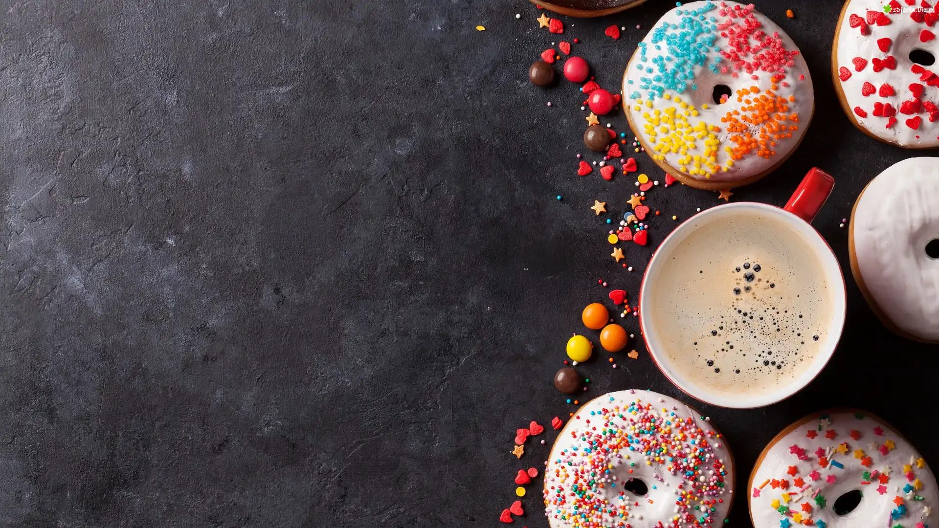 Zdjęcie, Kawa, Pączki, Donuty, Ciemne, Tło