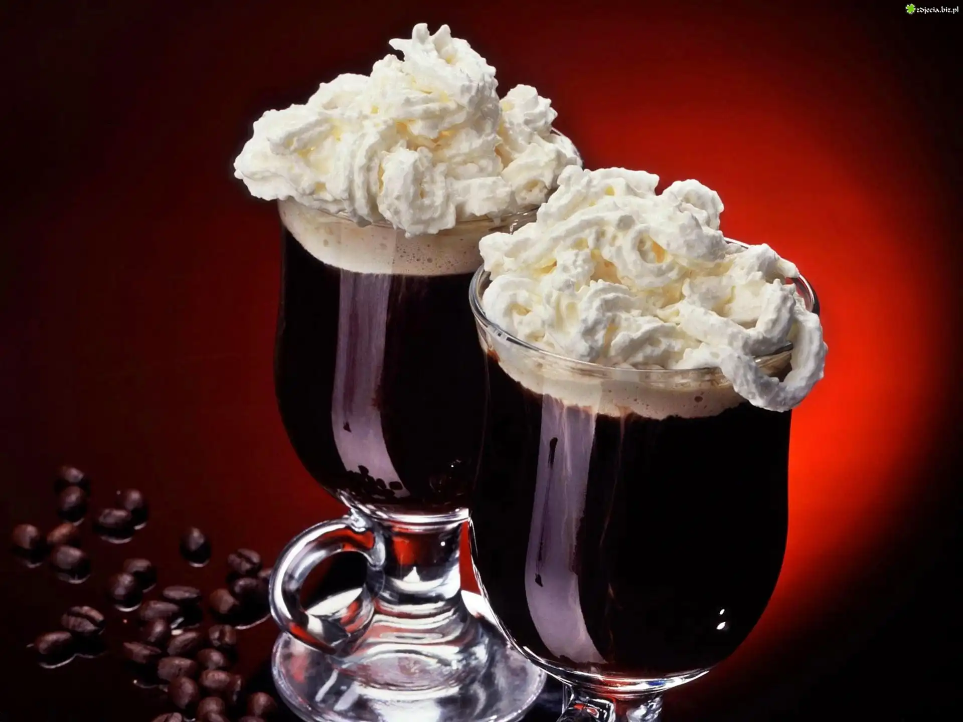 Zdjęcie Czarna, Kawa, Z Bitą, Śmietaną, Ziarenka, Kawy