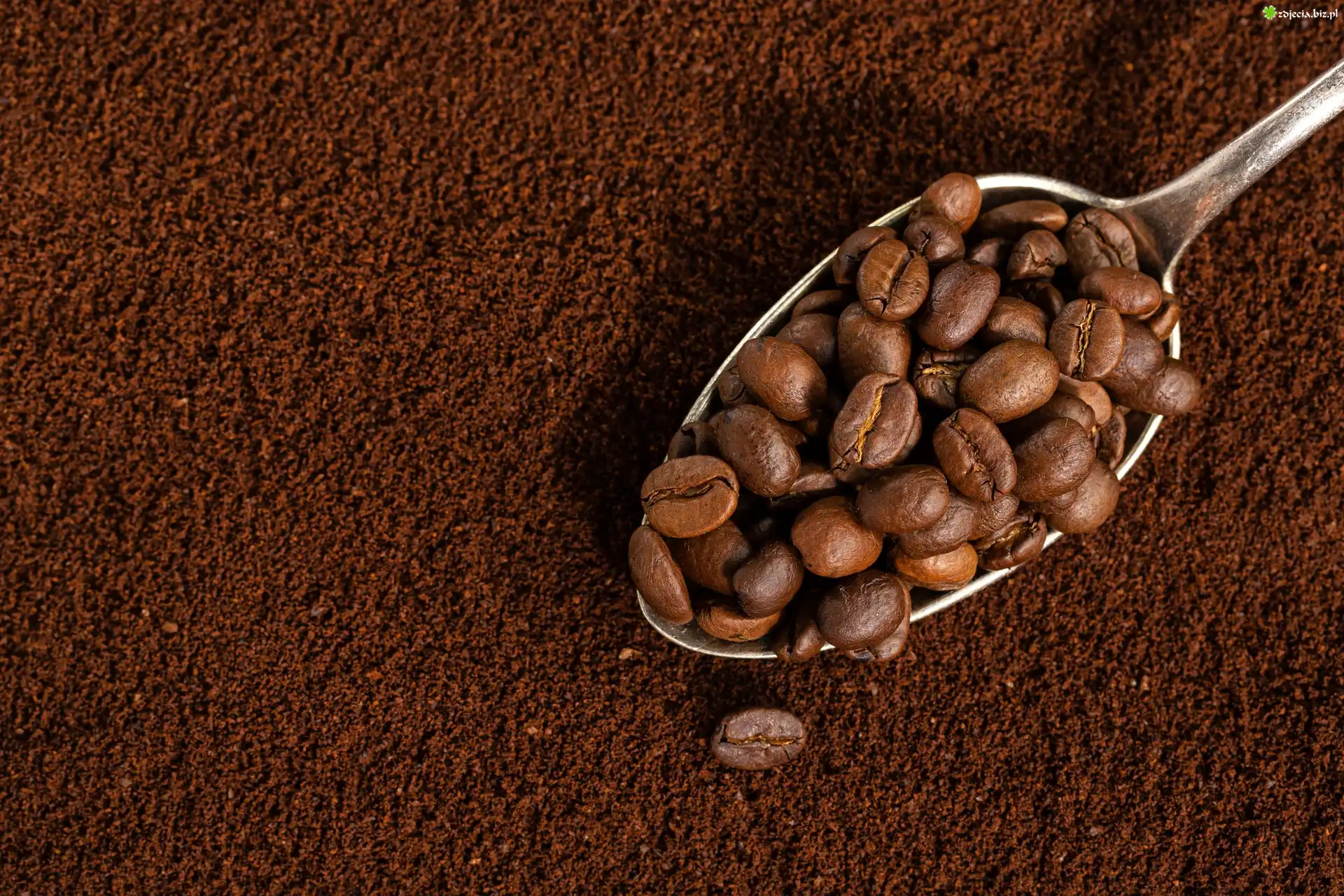 Zdjęcie Kawa, Łyżka, Ziarenka, Mielona