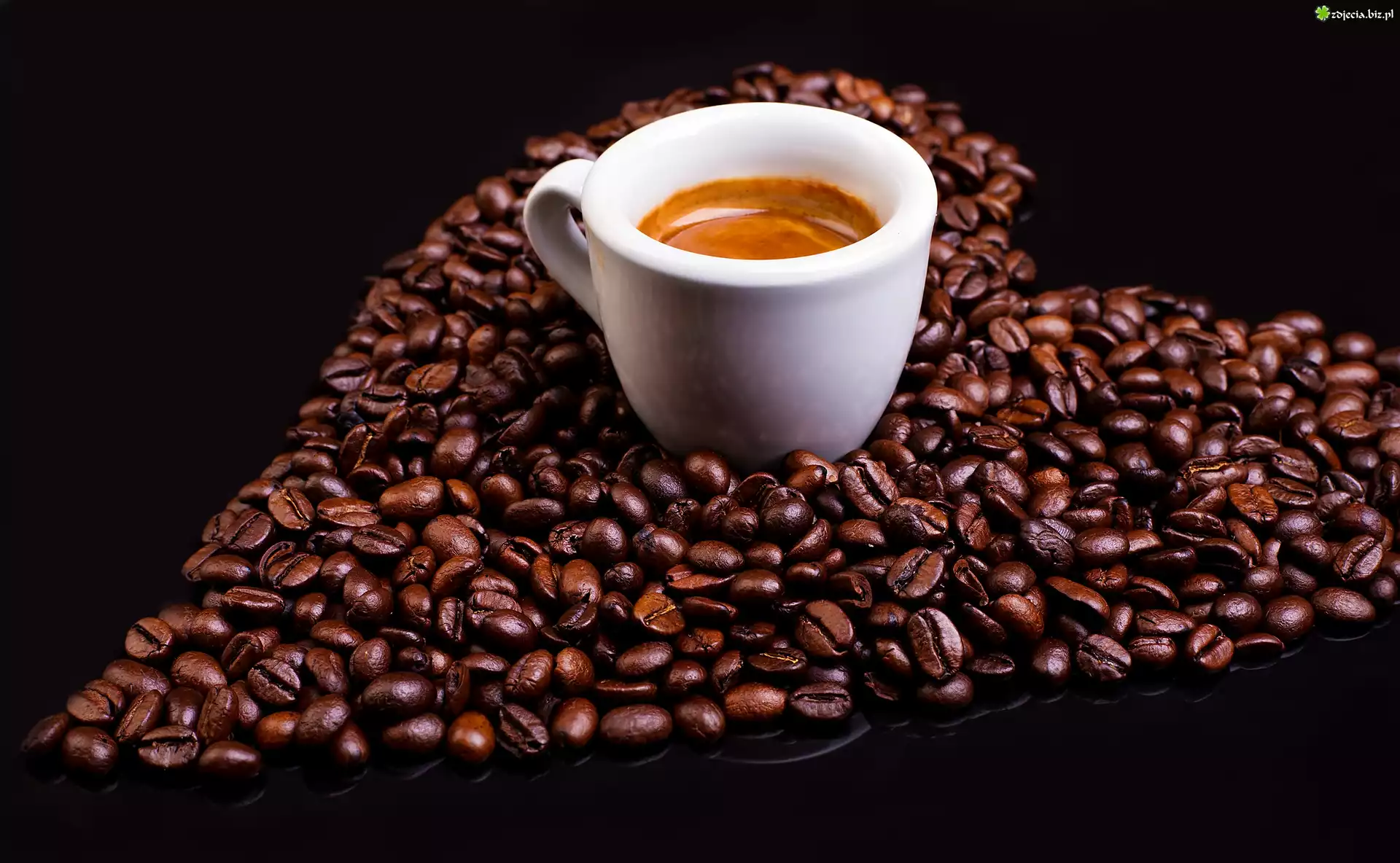 Zdjęcie Kawa, Biała, Filiżanka, Ziarna, Serce