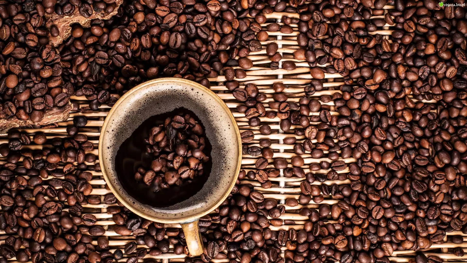 Zdjęcie Kawa, Rozsypane, Ziarna, Filiżanka