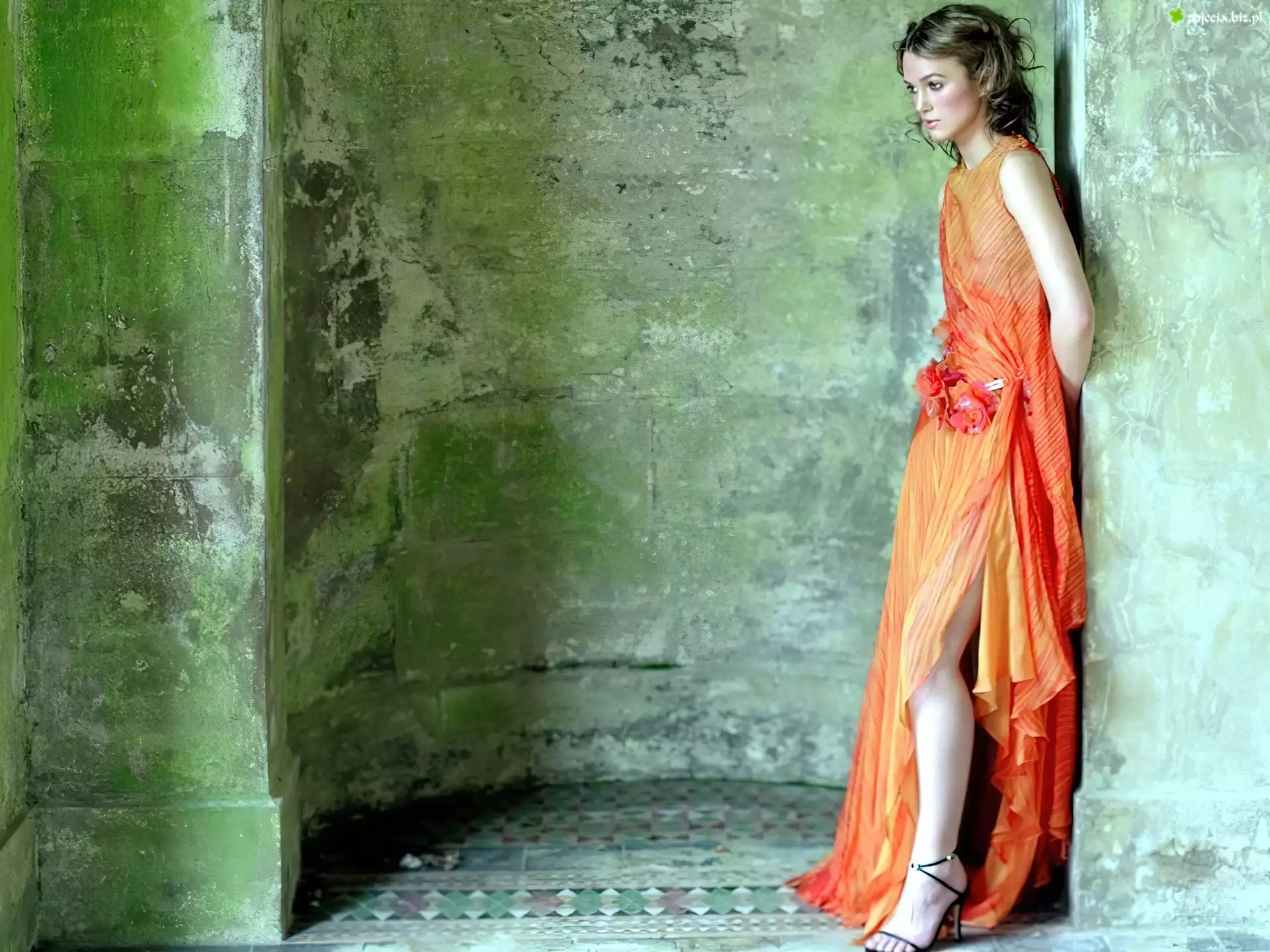 Zdjęcie, Keira Knightley, Pomarańczowa, sukienka