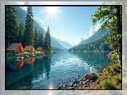 Zdjęcie, Jezioro, Kemping, Namioty, Góry, Drzewa