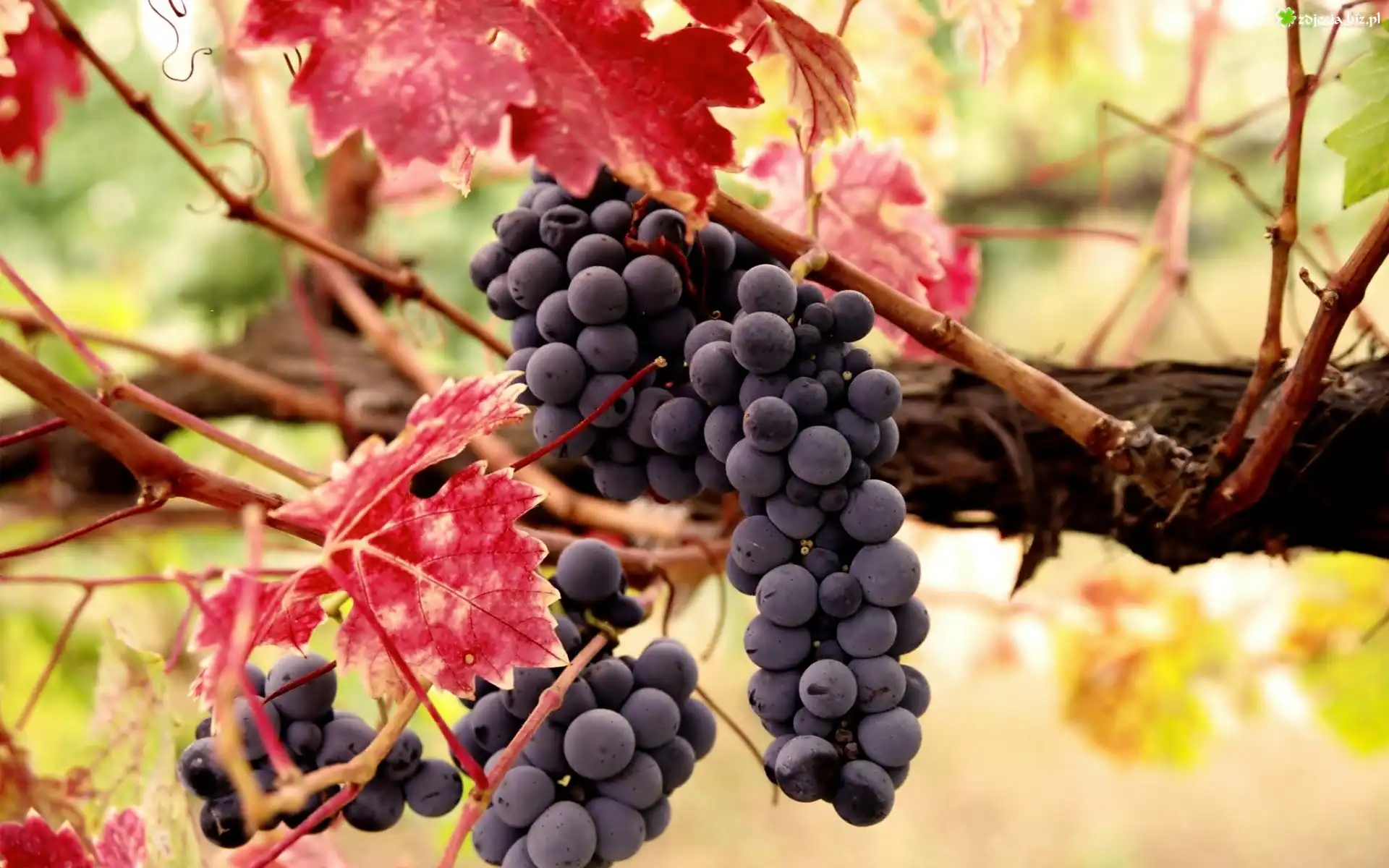 Zdjęcie Kiście, Winogrona, Kolorowe, Liście