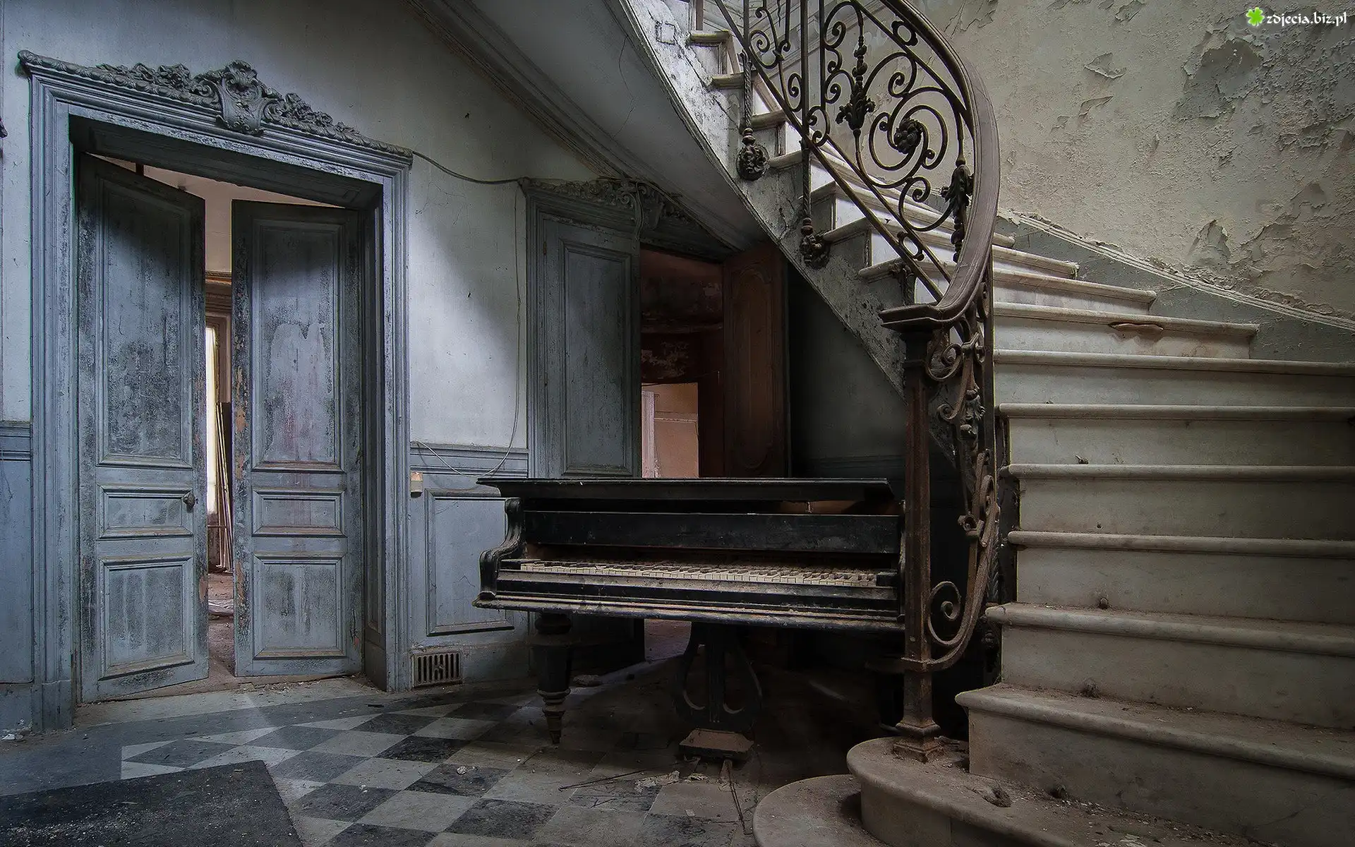 Zdjęcie Zaniedbana, Klatka, Schodowa, Schody, Drzwi, Pianino