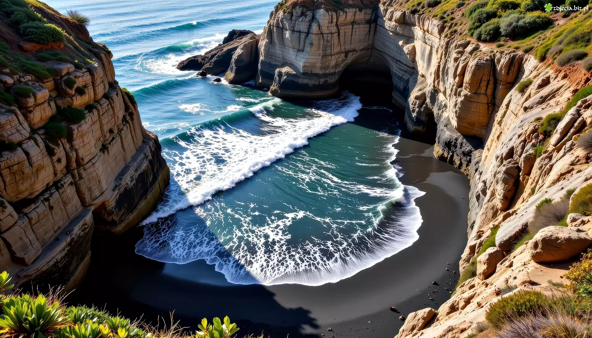 Zdjęcie Morze, Zatoka, Plaża, Klif, Grafika AI