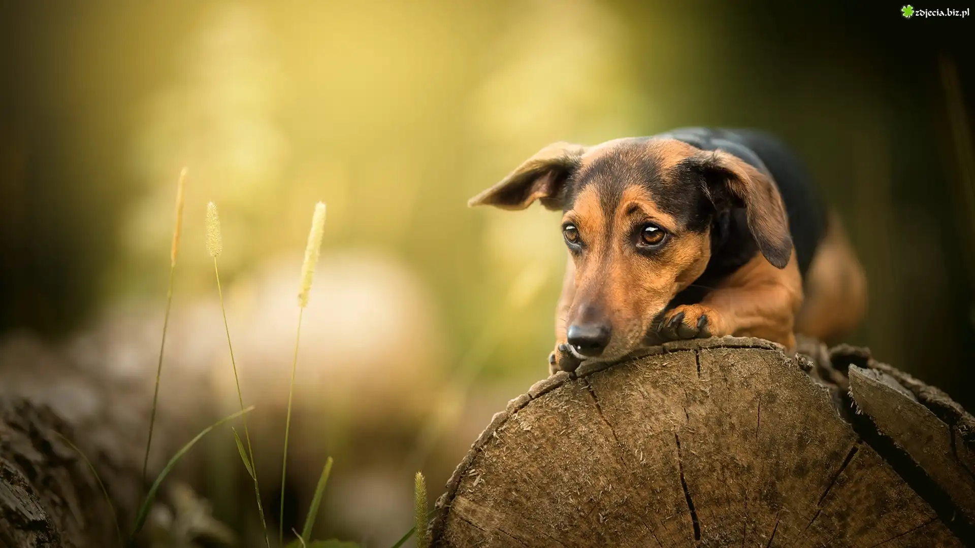 Zdjęcie Pies, Kłoda, Roślinki