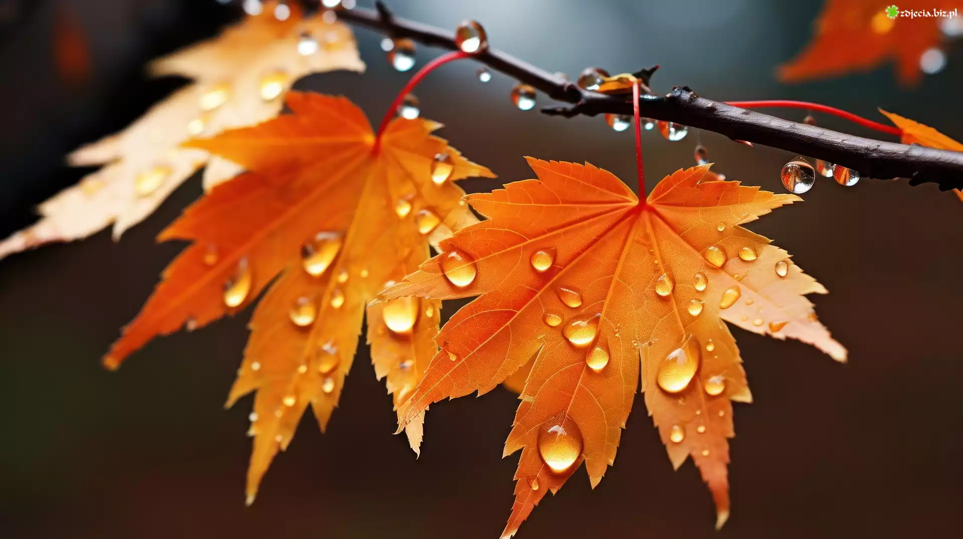 Zdjęcie Liście, Klon, Krople, Gałąź, Grafika