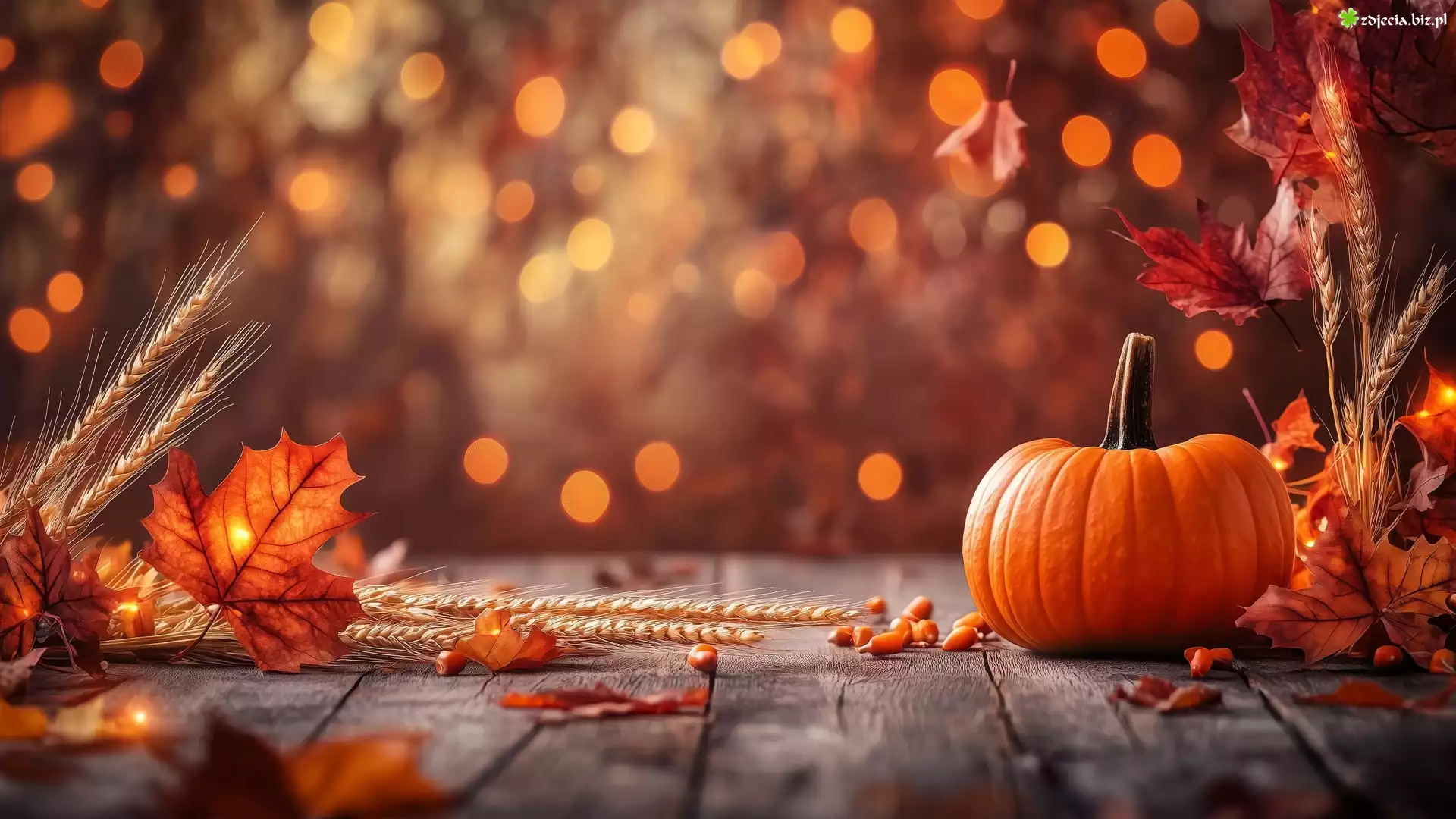 Zdjęcie Dynia, Deski, Liście, Kłosy, Grafika AI