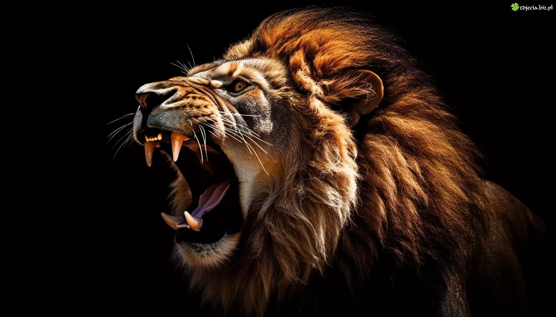 Zdjęcie Lew, Głowa, Grzywa, Kły, Czarne, Tło, AI