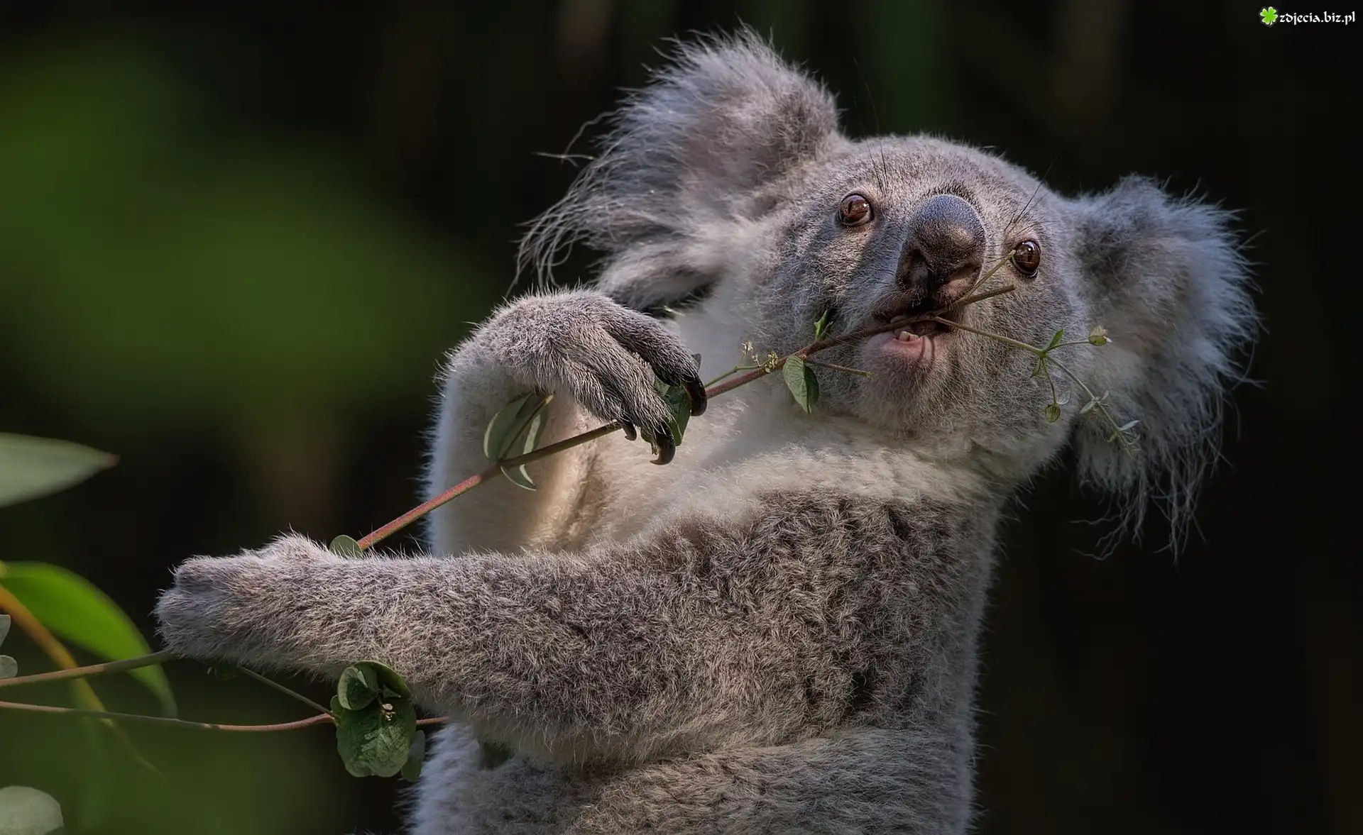 Zdjęcie Koala, Miś, Gałązka, Liście