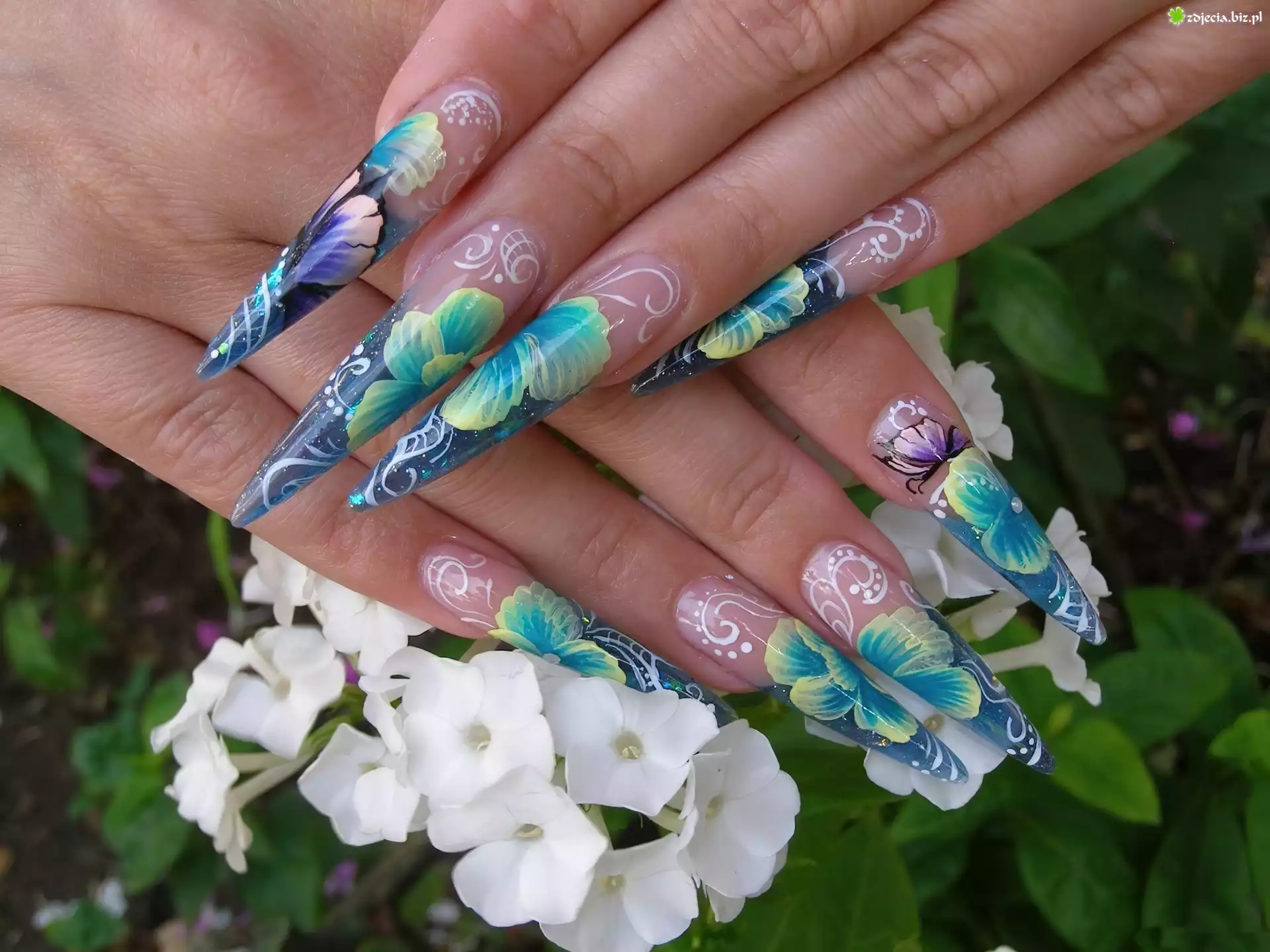 Zdjęcie Kobiece, Dłonie, Kolorowe, Paznokcie, Kwiaty