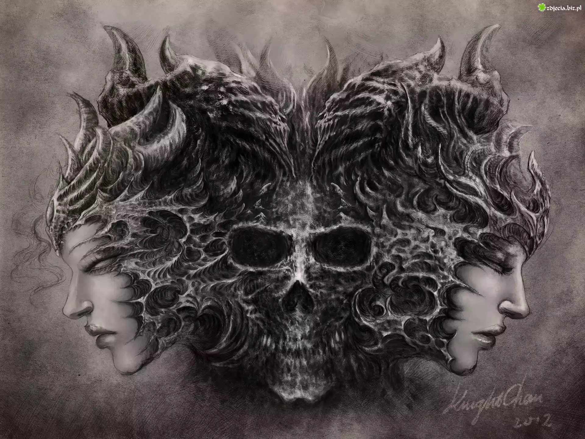 Zdjęcie, Twarze, Kobiet, Czaszka