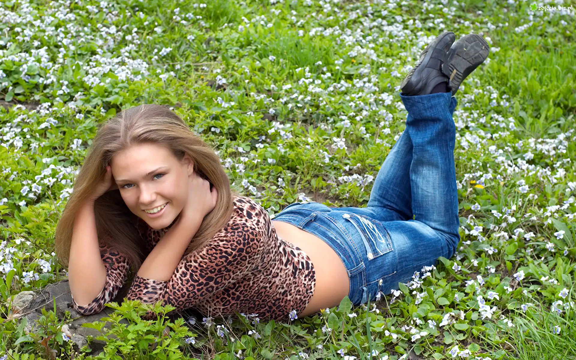 Zdjęcie Kobieta, Uśmiech, Łąka, Kwiaty