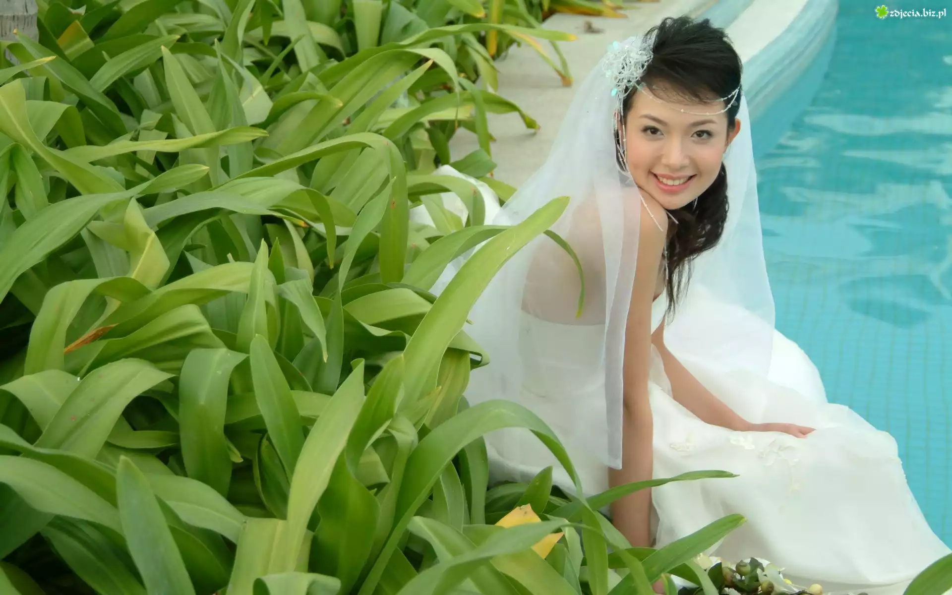 Zdjęcie Kobieta, Panna, Młoda, Basen, Welon