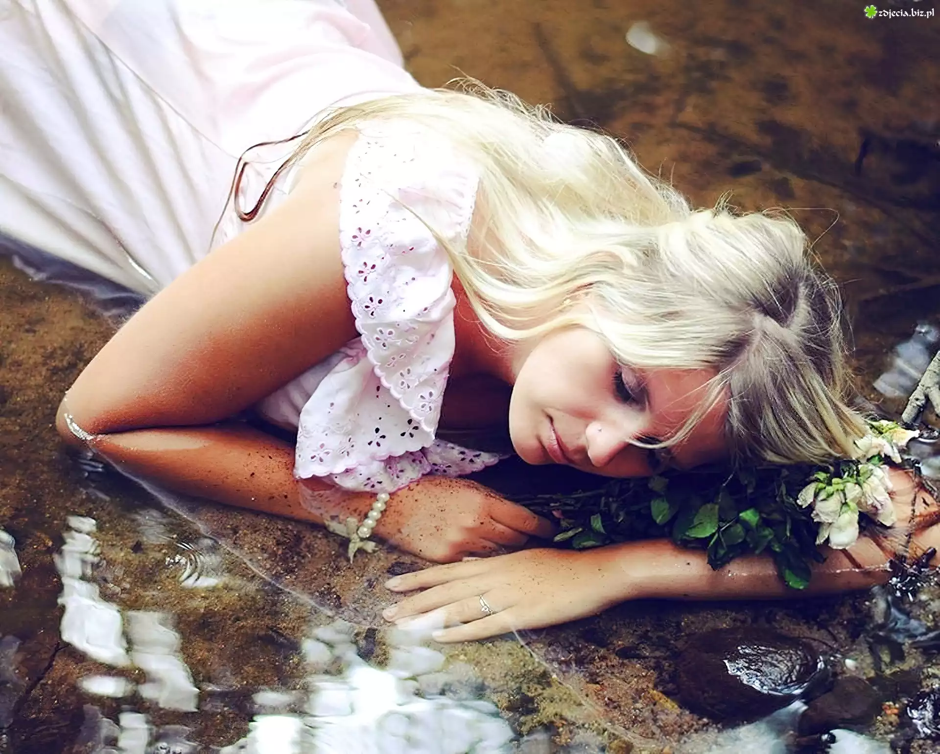Zdjęcie Kobieta, Blondynka, Biała, Sukienka