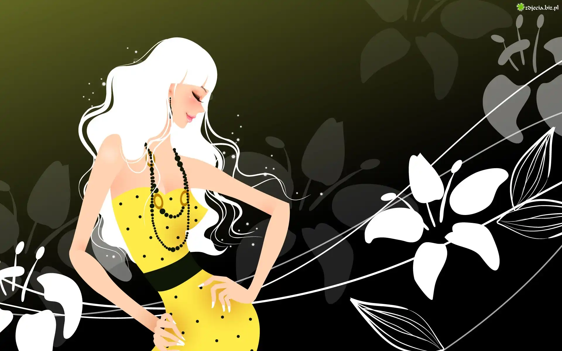 Zdjęcie Kobieta, Żółta, Suknia, Białe, Kwiatki
