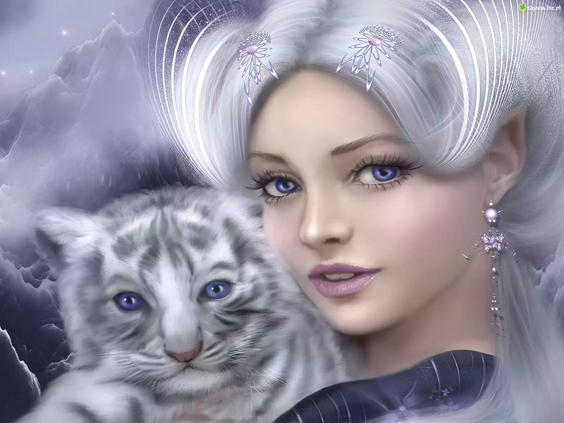 Zdjęcie Kobieta, Mały, Biały, Tygrys