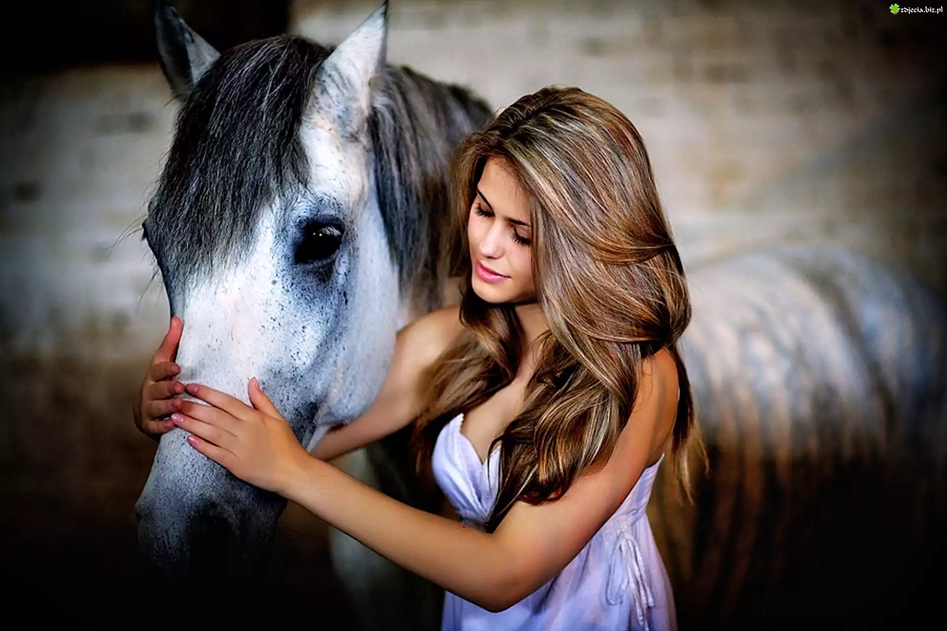 Zdjęcie Kobieta, Długie, Włosy, Biały, Koń