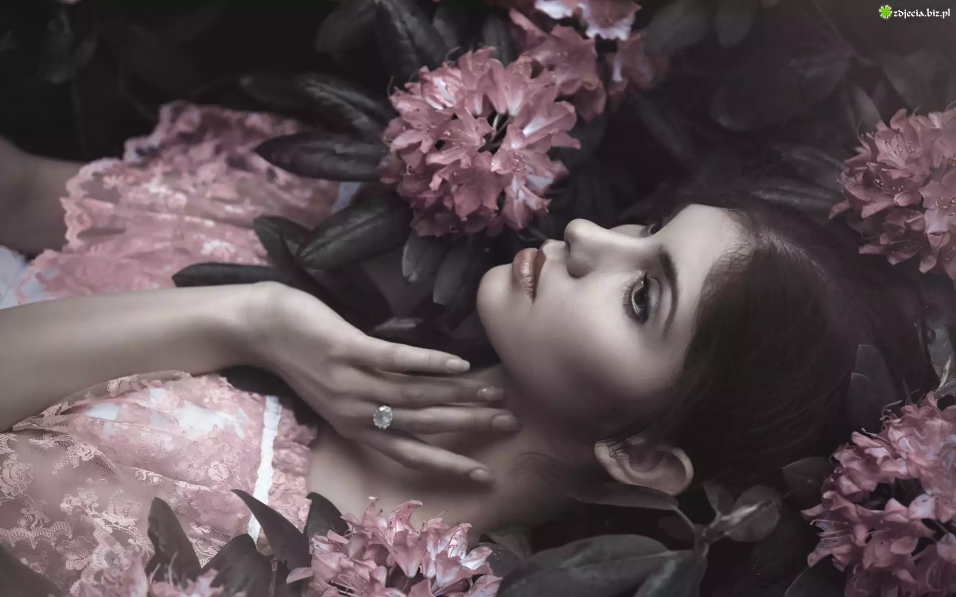 Zdjęcie Kobieta, Różowa, Bluzka, Kwiaty