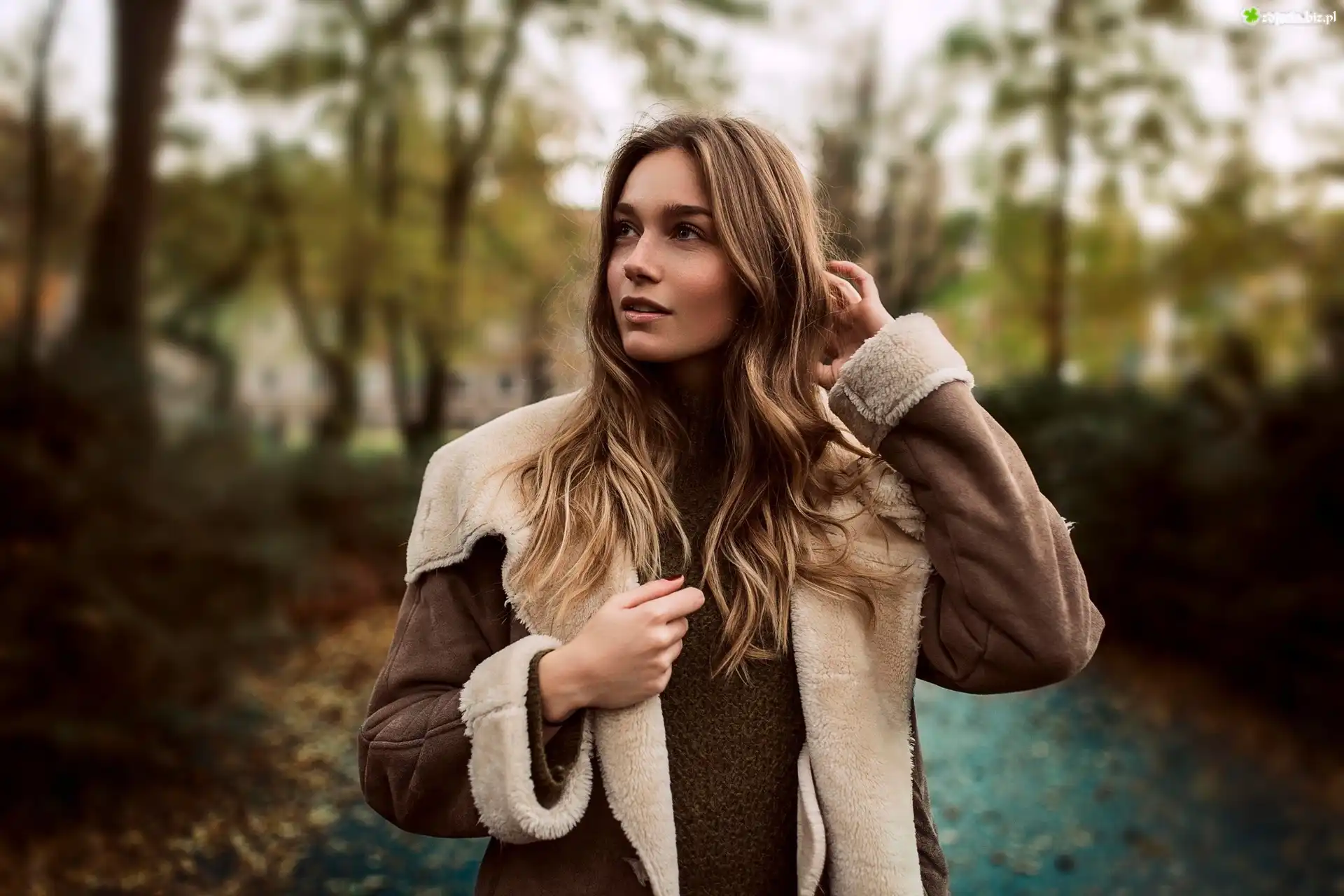 Zdjęcie, Kobieta, Brunetka, Brązowy, Kożuszek