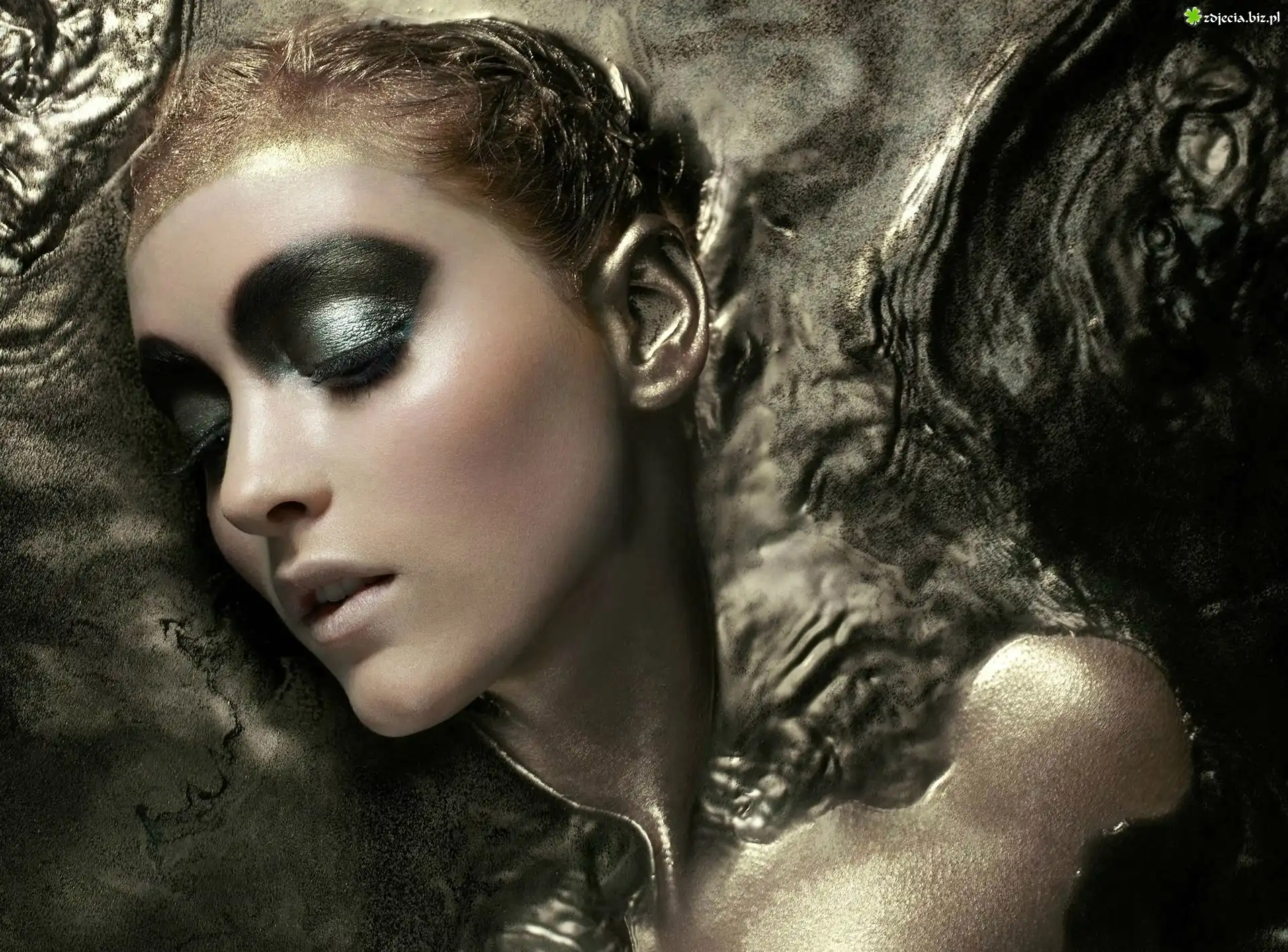 Zdjęcie, Kobieta, Makijaż, Charakteryzacja, Złocenie