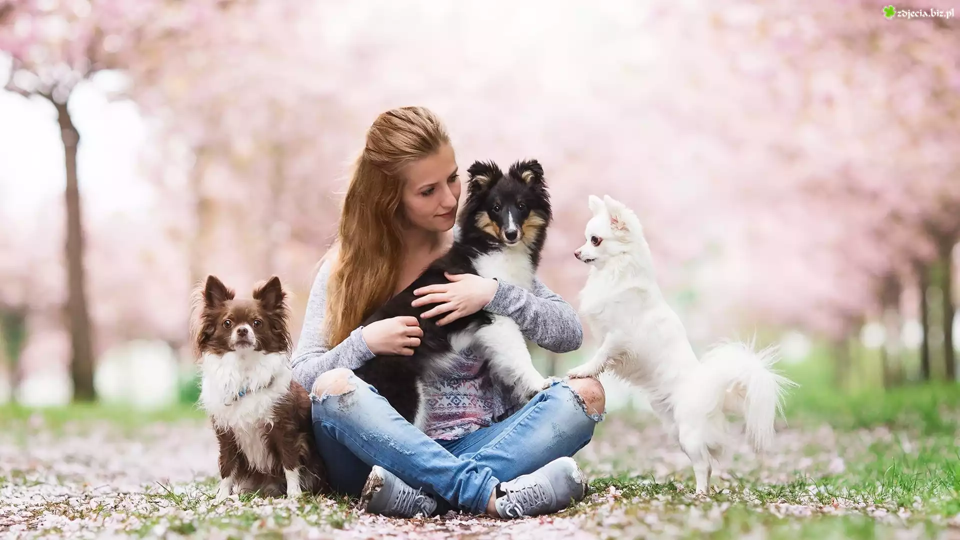 Zdjęcie, Kobieta, Psy, Owczarek szetlandzki, Chihuahua długowłosa