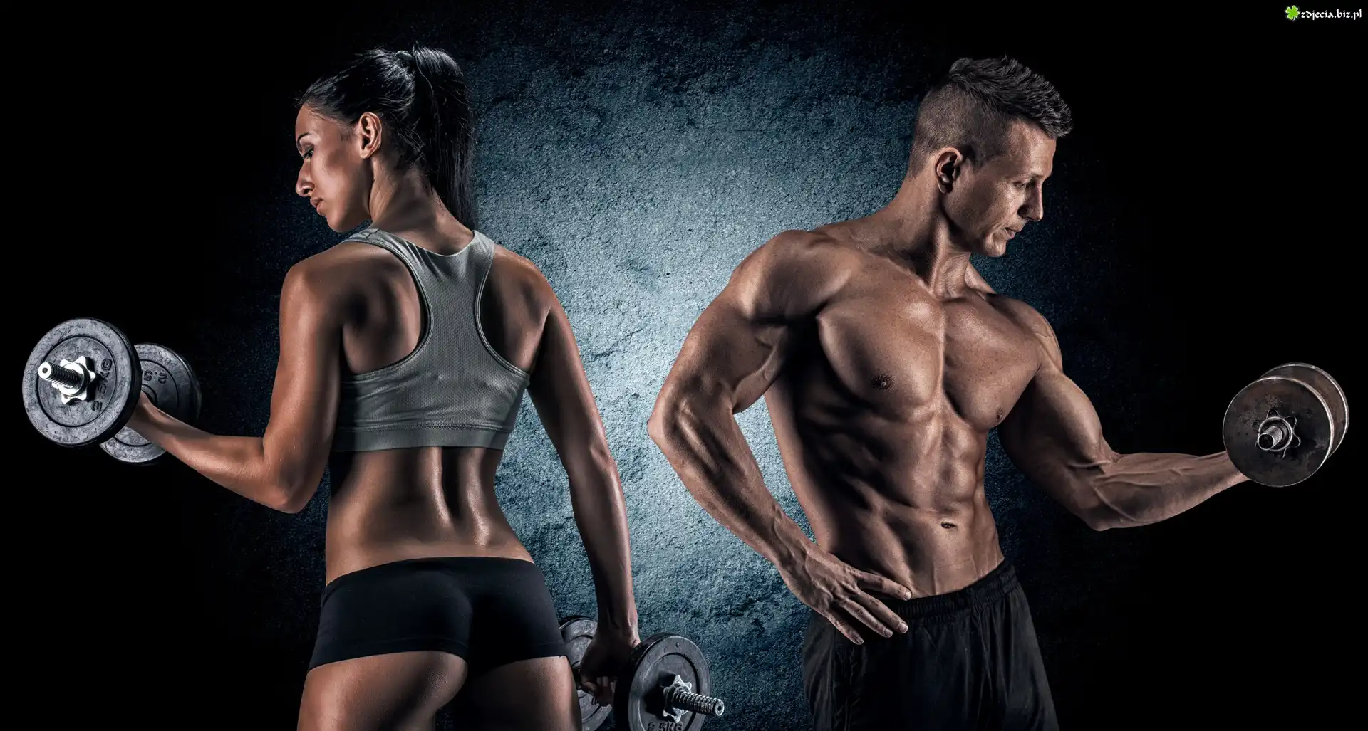 Zdjęcie Kobieta, Mężczyzna, Kulturystyka, Ciężarki, Trening