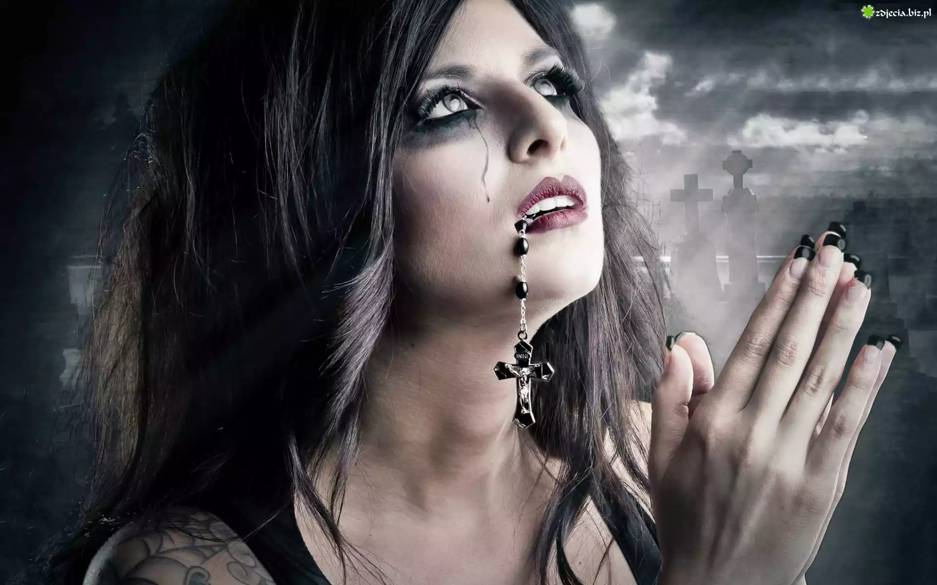 Zdjęcie Kobieta, Modlitwa, Różaniec, Łzy, Cmentarz, Kobieta
