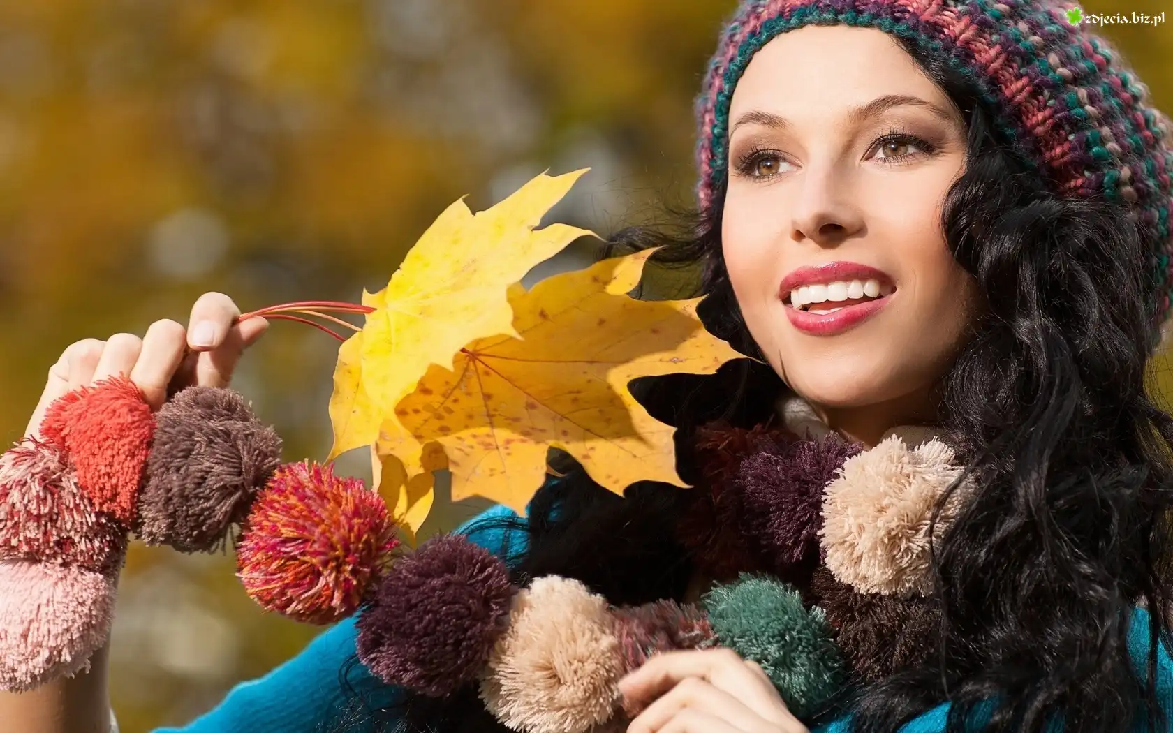 Zdjęcie Kobieta, Jesień, Klonowy, Liść, Czapka, Szalik