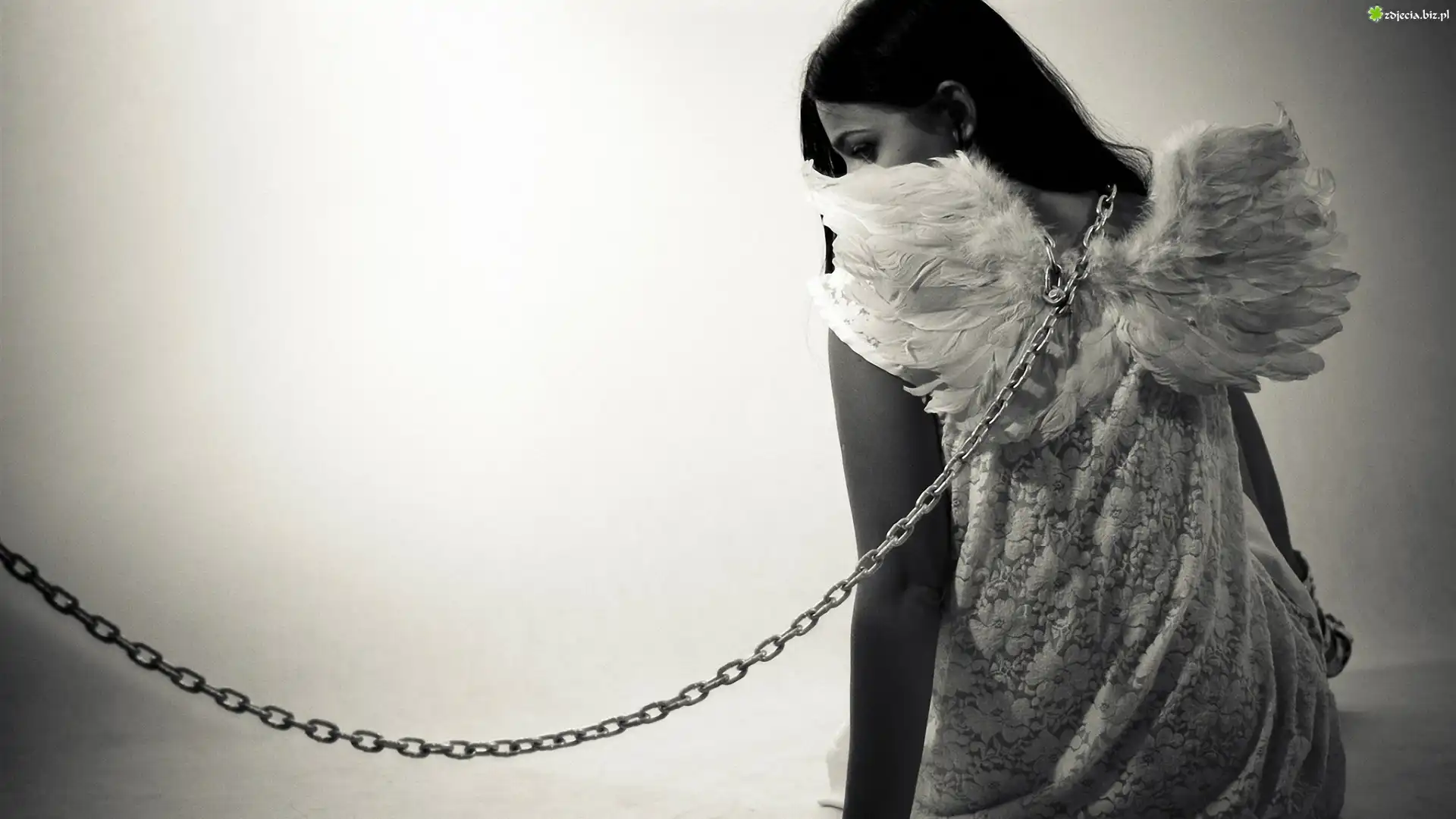 Zdjęcie Kobieta, Skrzydła, Łańcuch, Czarno-Białe