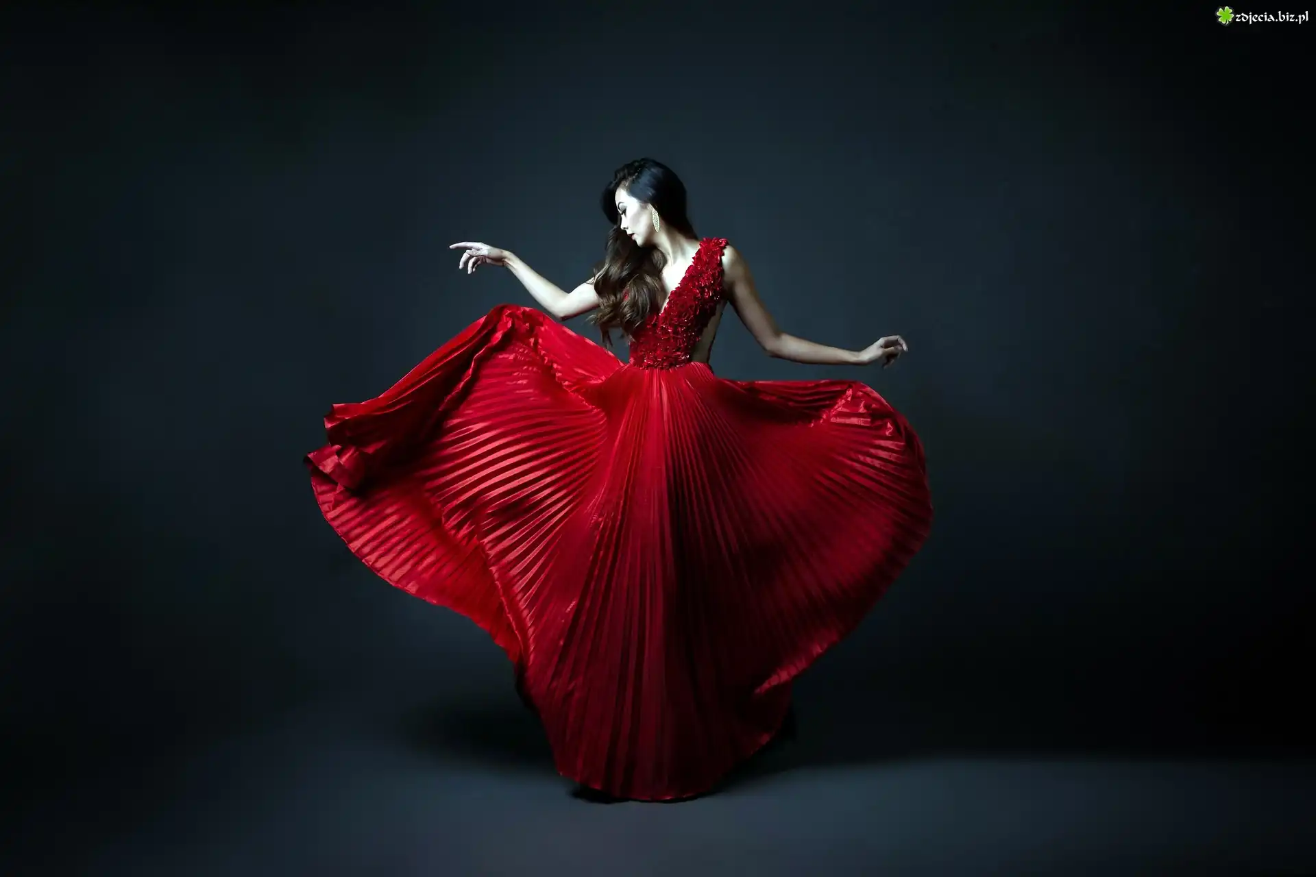 Zdjęcie Kobieta, Brunetka, Czerwona, Suknia