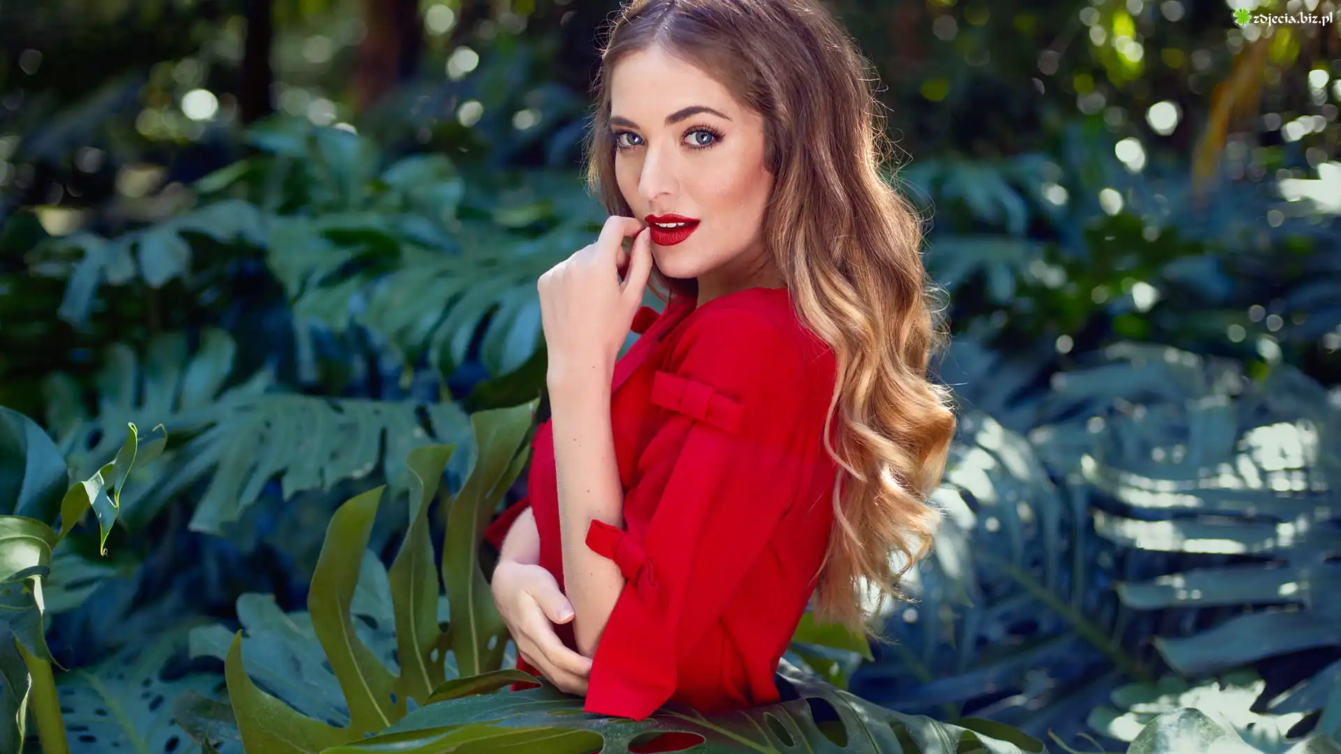Zdjęcie Kobieta, Długowłosa, Czerwona, Bluzka